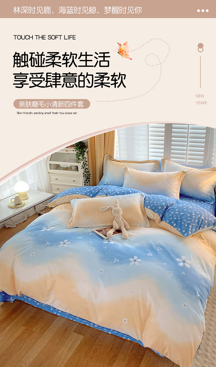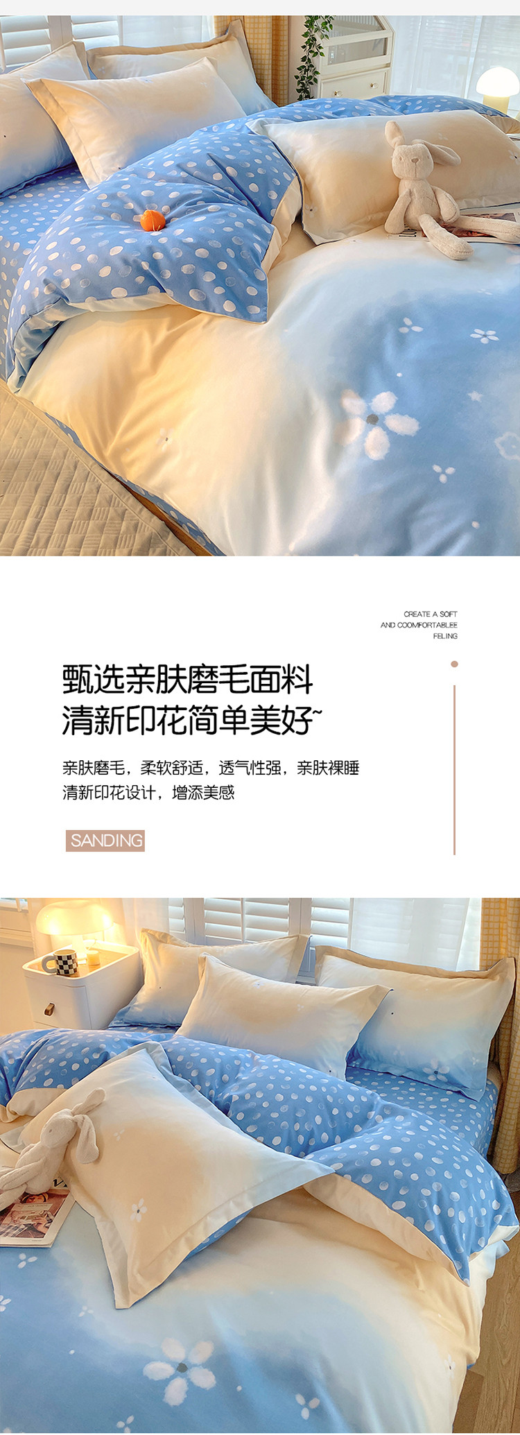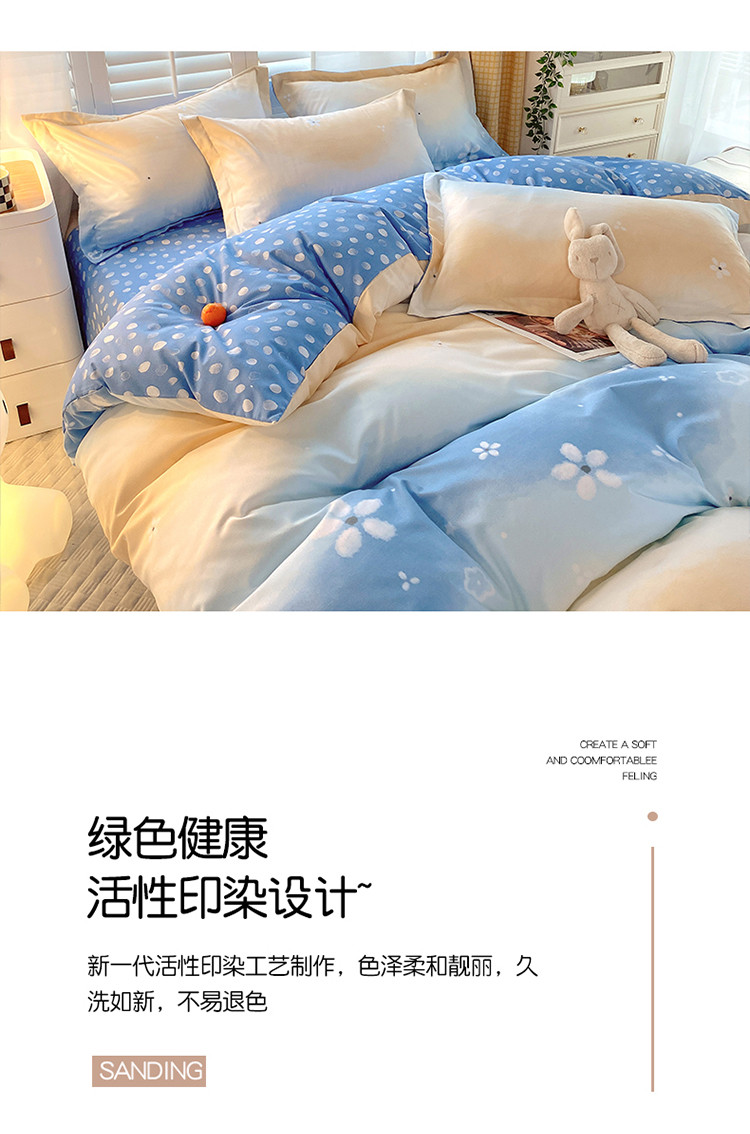 当前位置: 91家纺网 > 商品网购 > 床品套件 > 四件套 > 化纤普通四件套 > 艾橙 秋冬新款140g植物羊绒磨毛四件套系列 清韵花香