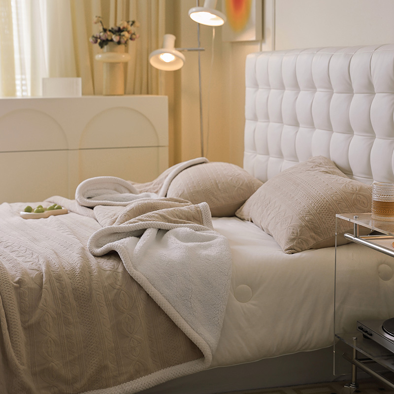 (总)寐眠 2025新款A类立体雕花牛奶绒四件套-系列二,灰韵暖叶,暖棕雅致,青柠暖枝,柔粉暖絮