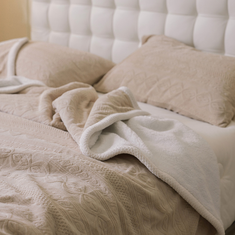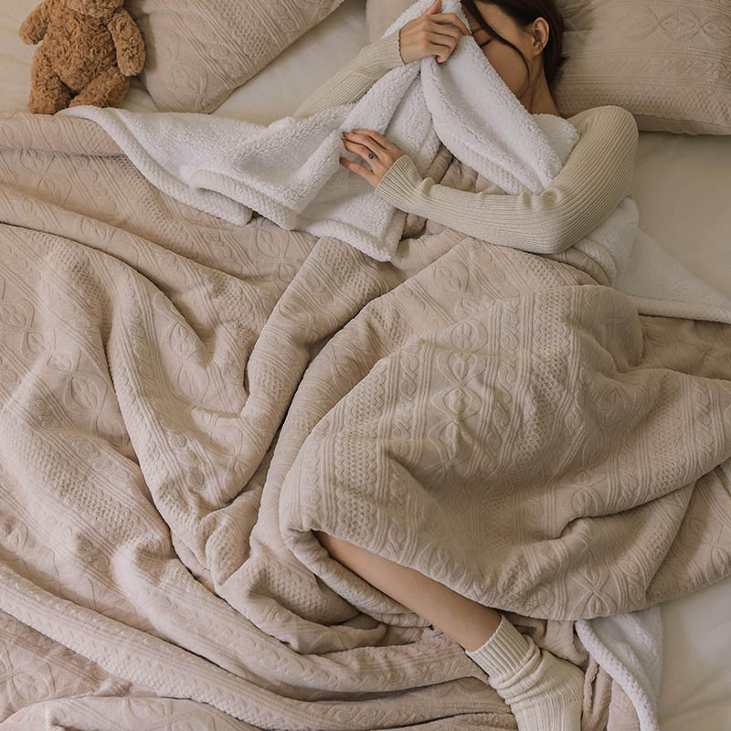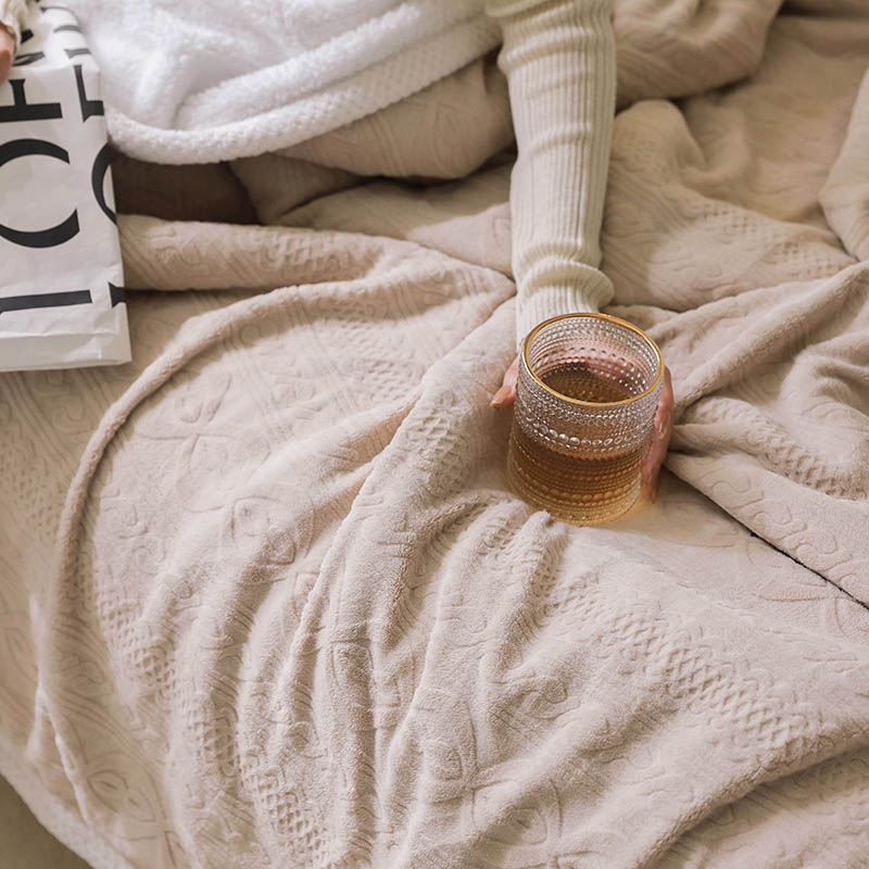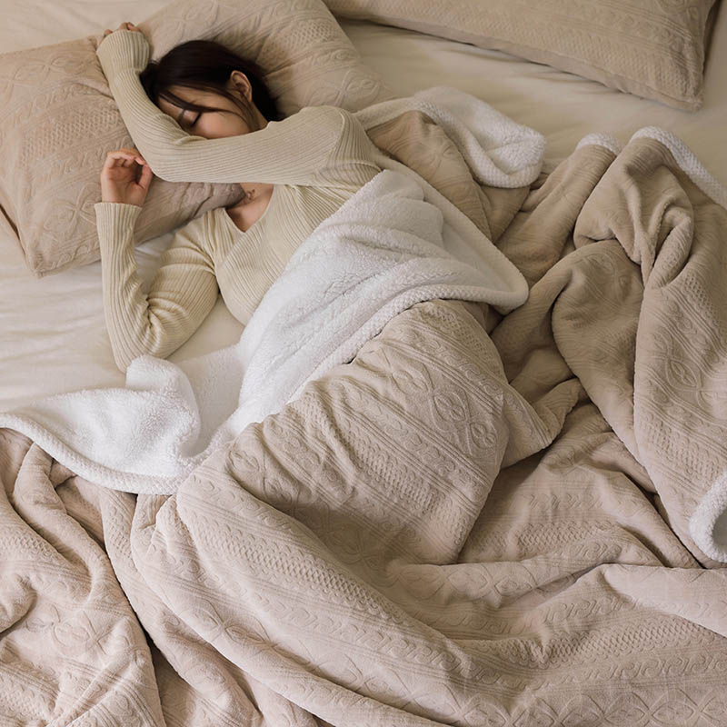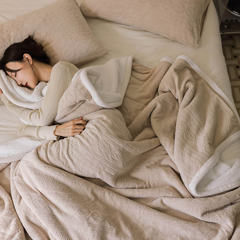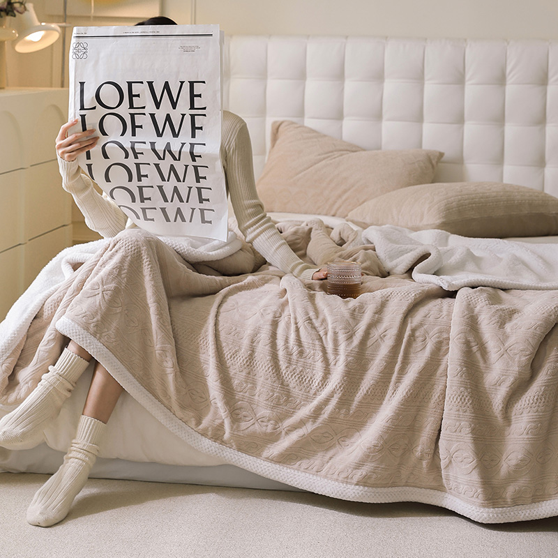 寐眠 2022新款牛奶绒剪花双层毯 优雅咖