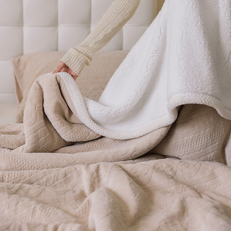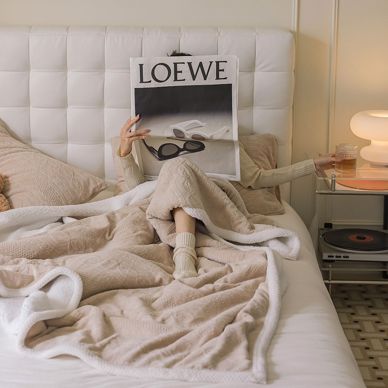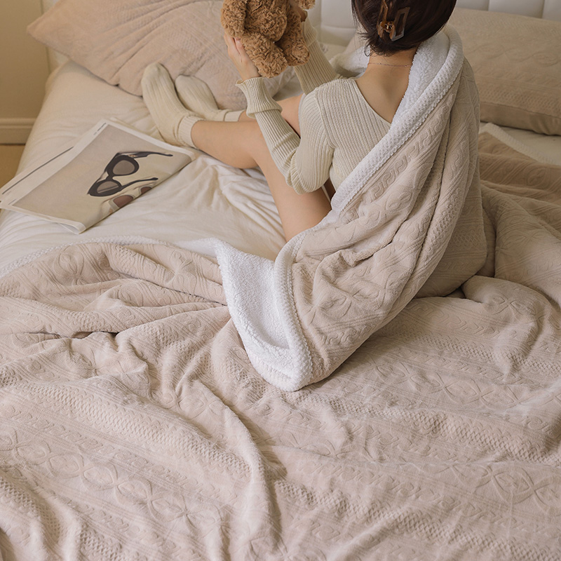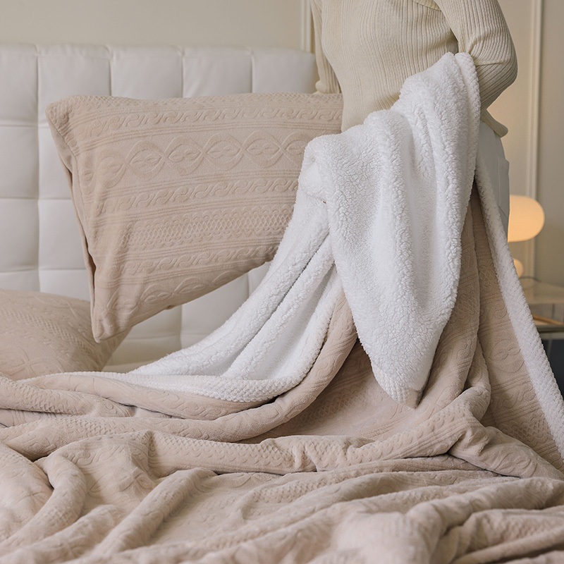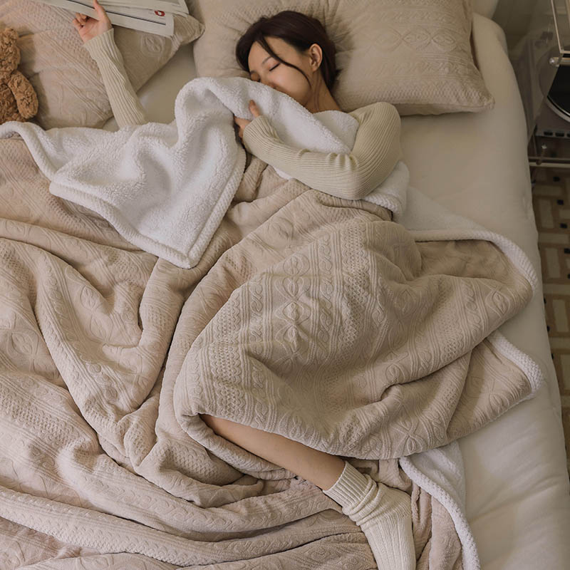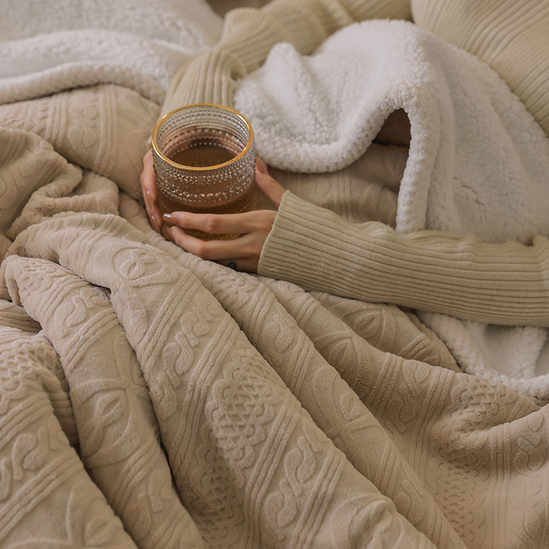 寐眠 2022新款牛奶绒剪花双层毯 优雅咖