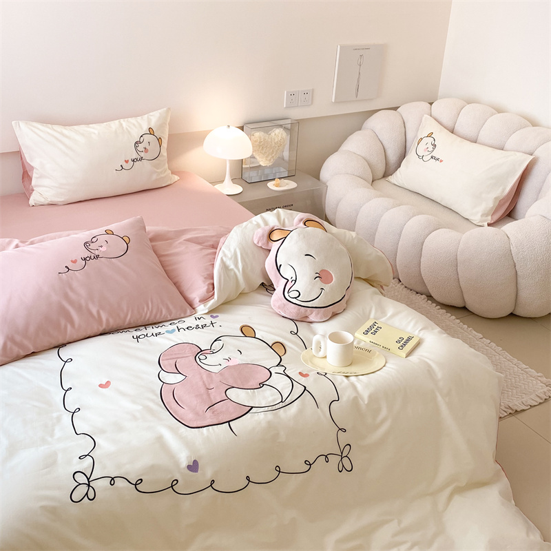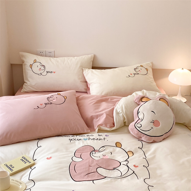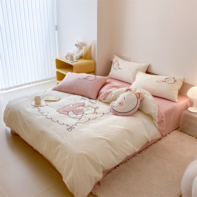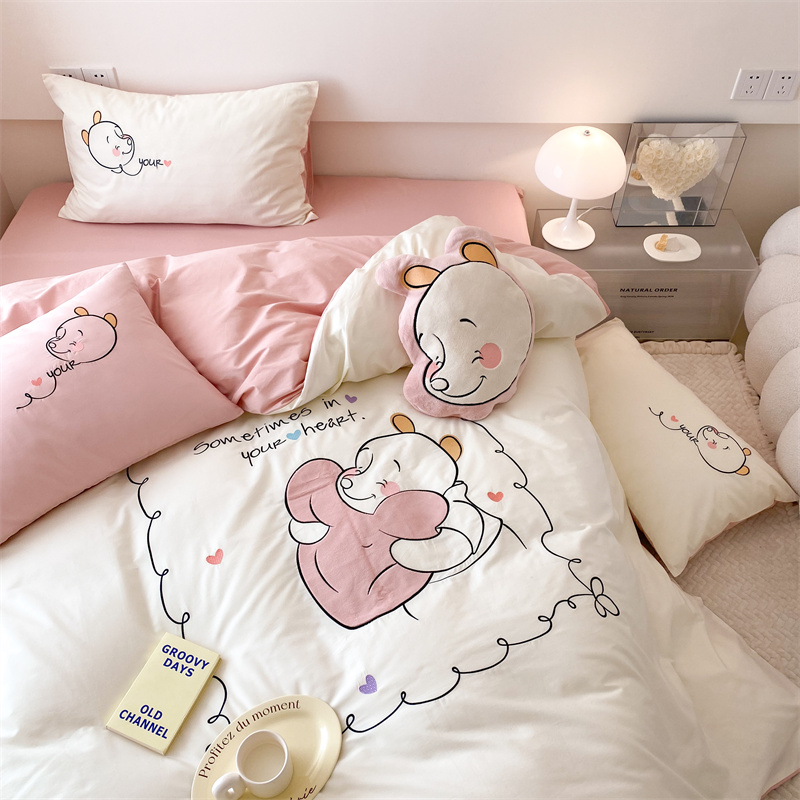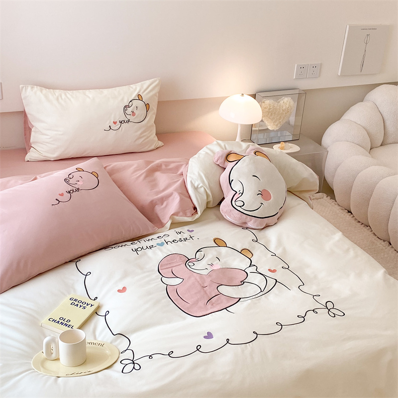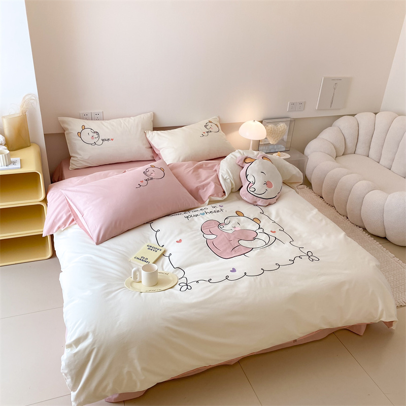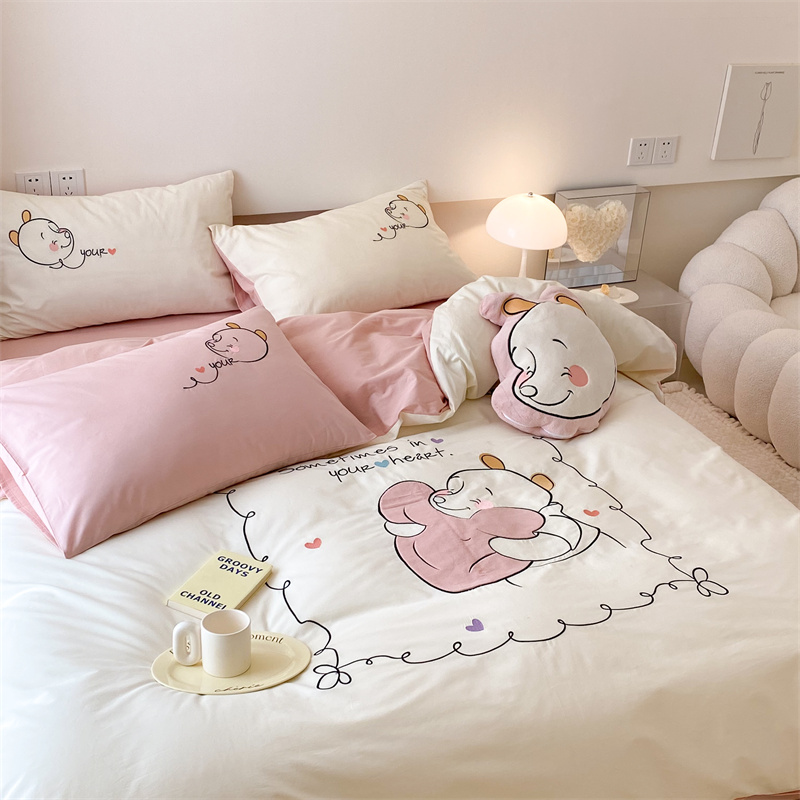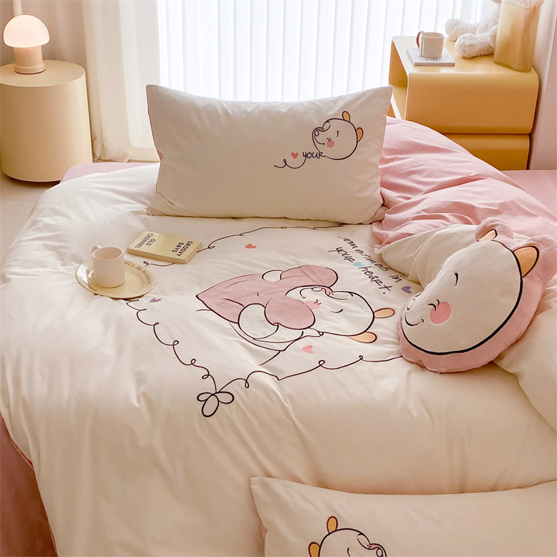 (总)朗莎 2024新款40S水洗棉四件套,爱心米奇,粉猪猪
