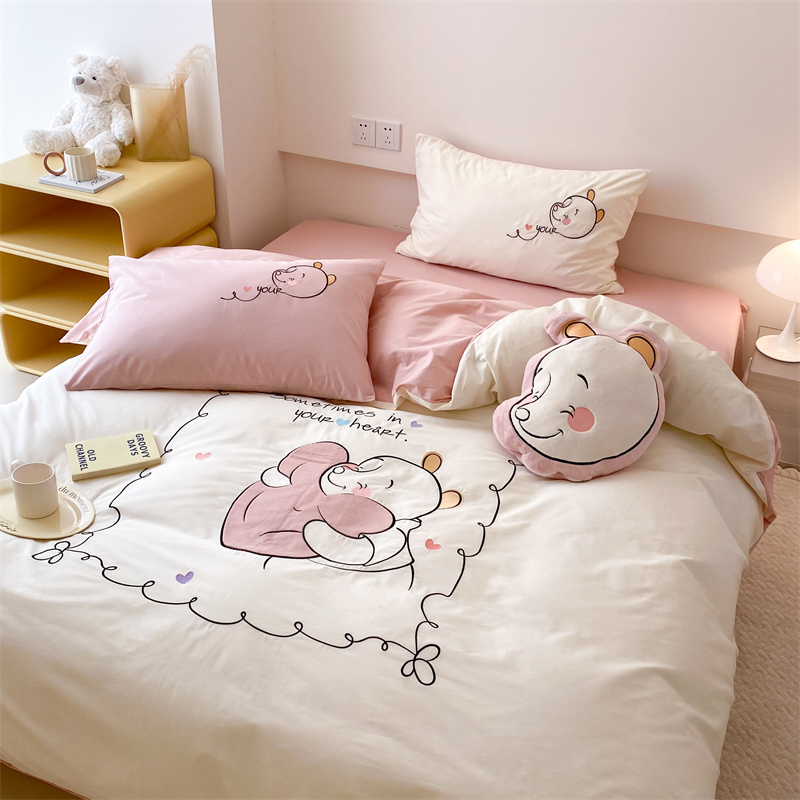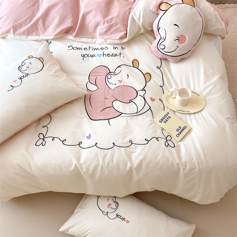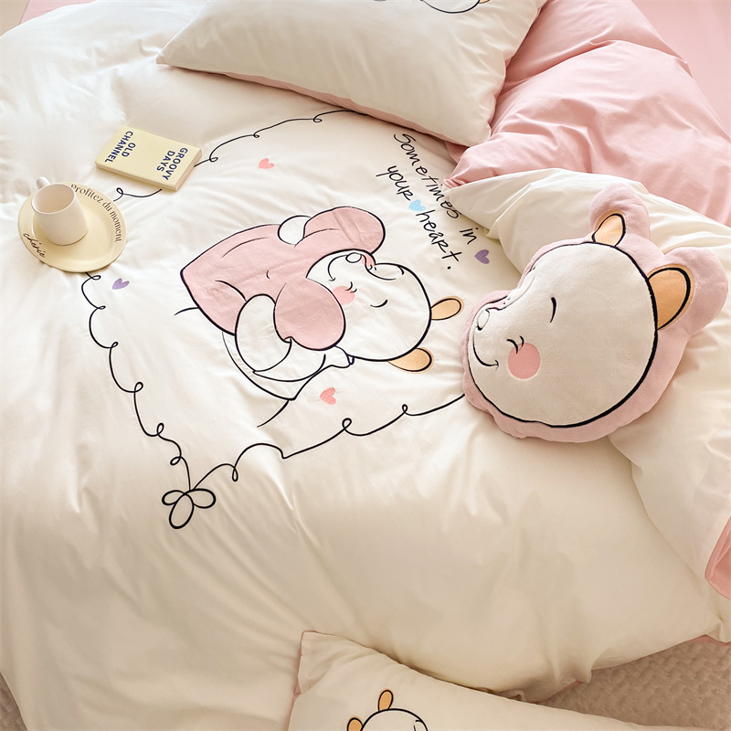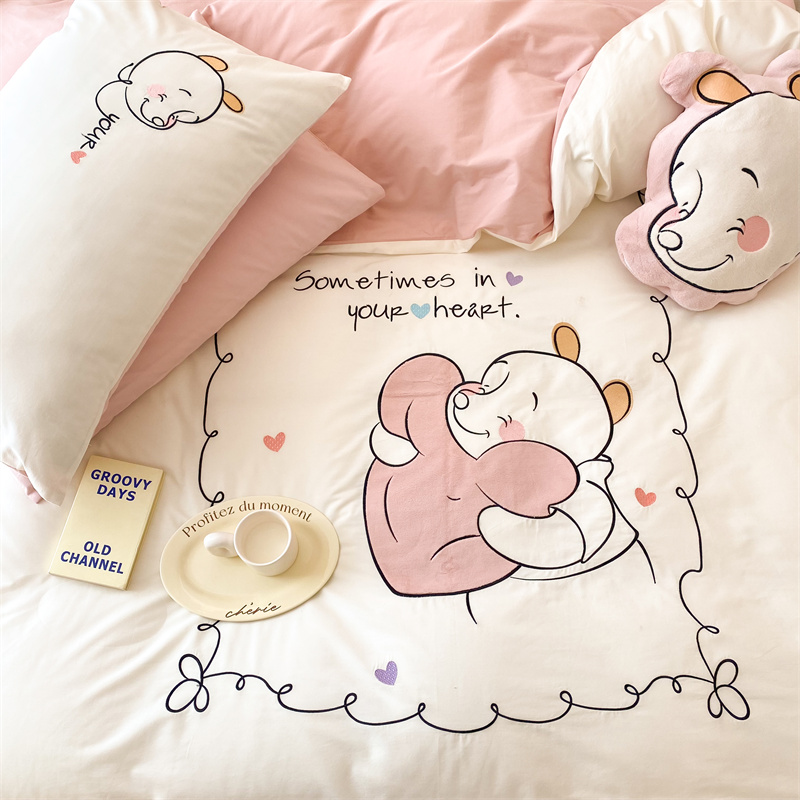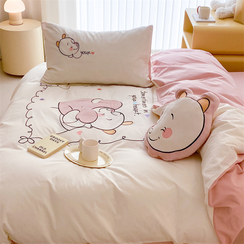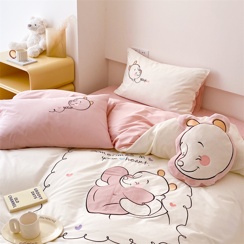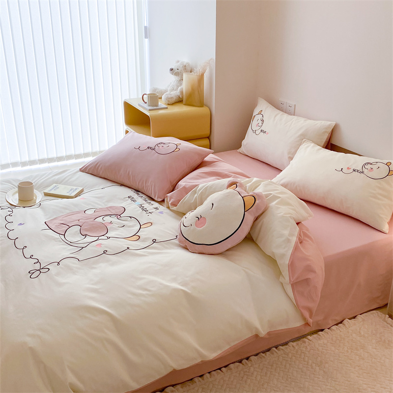 (总)朗莎 2024新款40S水洗棉四件套,爱心米奇,粉猪猪