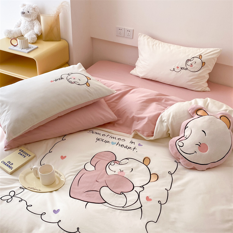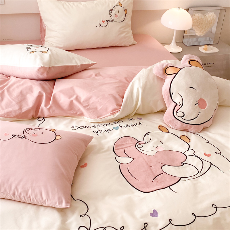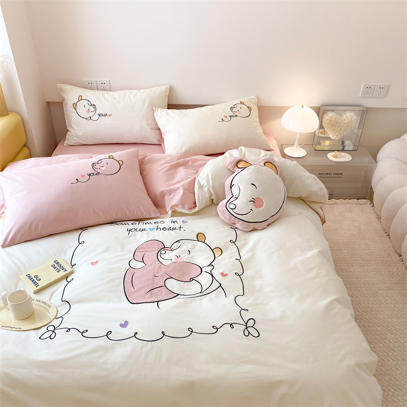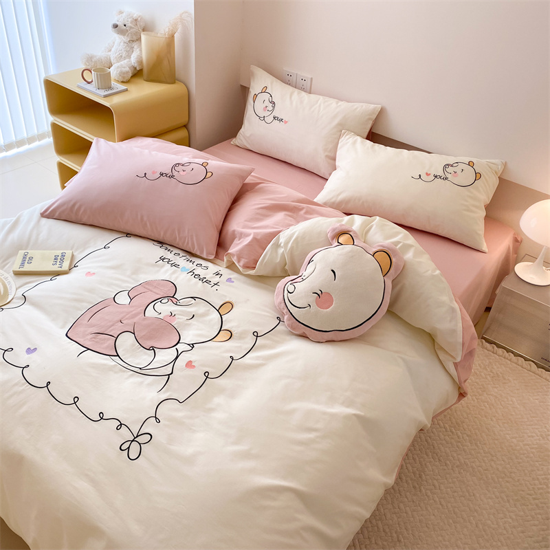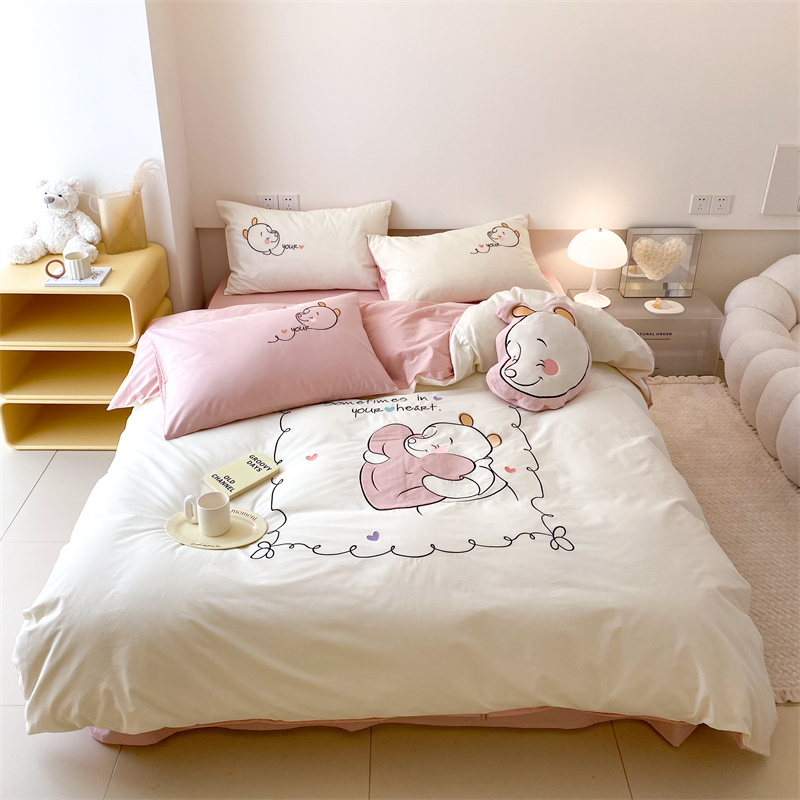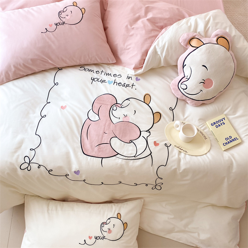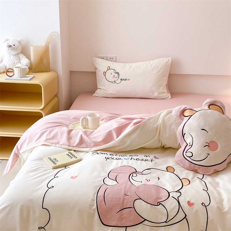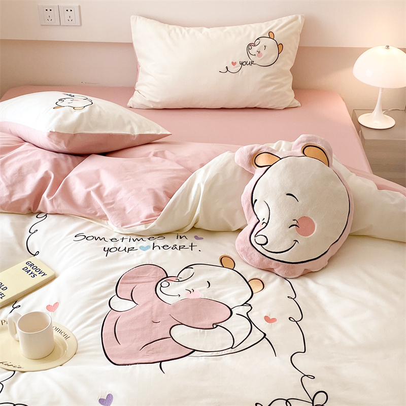 (总)朗莎 2024新款40S水洗棉四件套,爱心米奇,粉猪猪