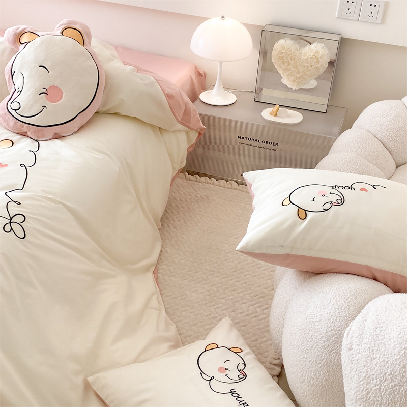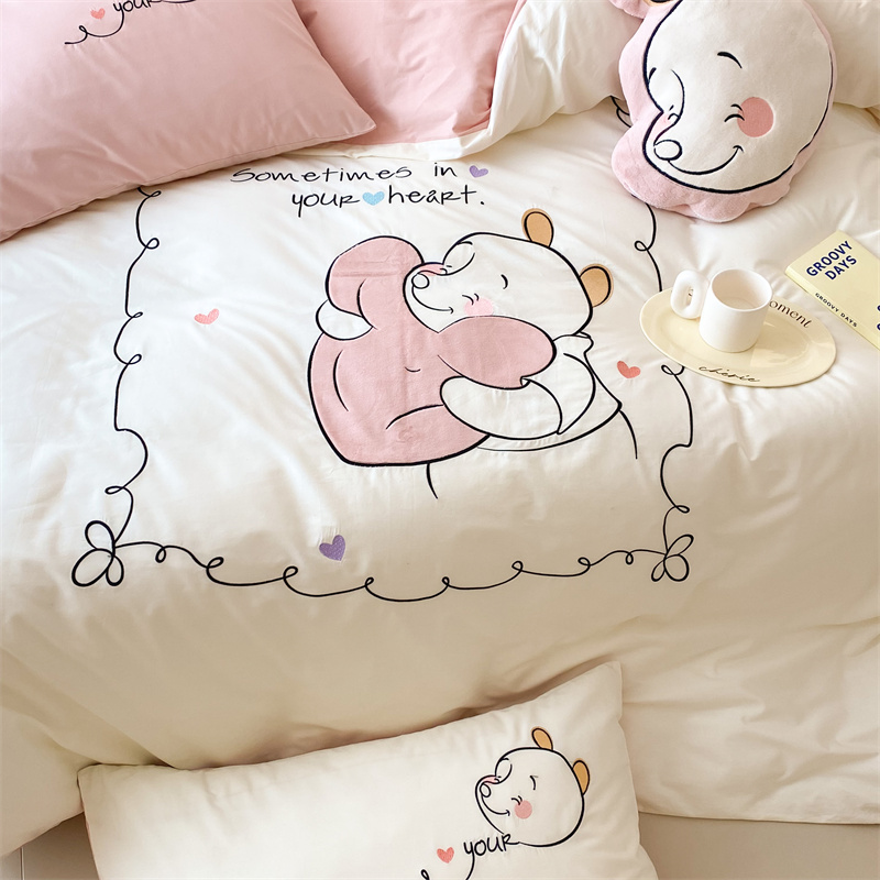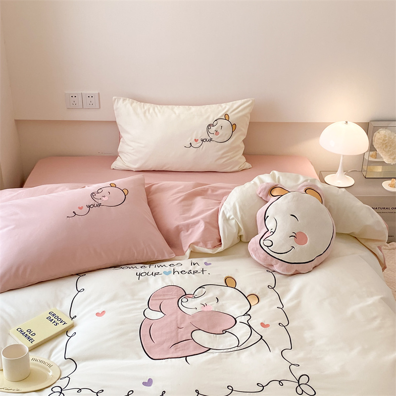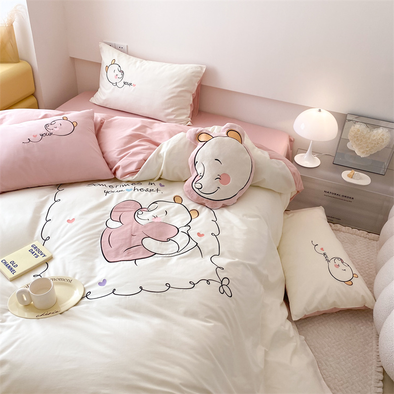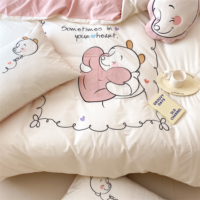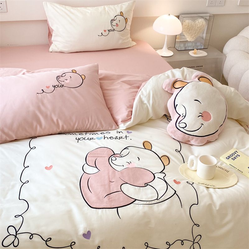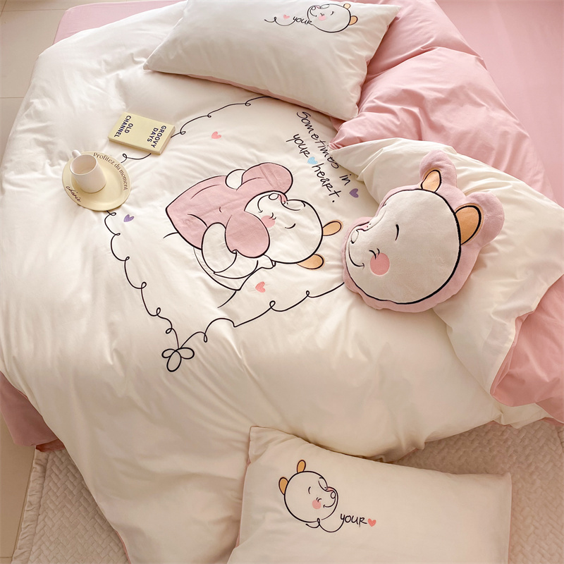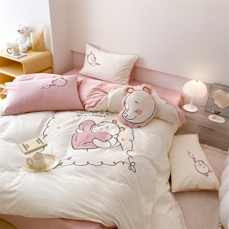 (总)朗莎 2024新款40S水洗棉四件套,爱心米奇,粉猪猪