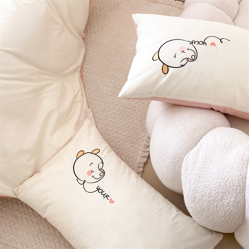 (总)朗莎 2024新款A版双层纱提花绣花B版40s水洗棉四件套,小兔子粉,小兔子蓝
