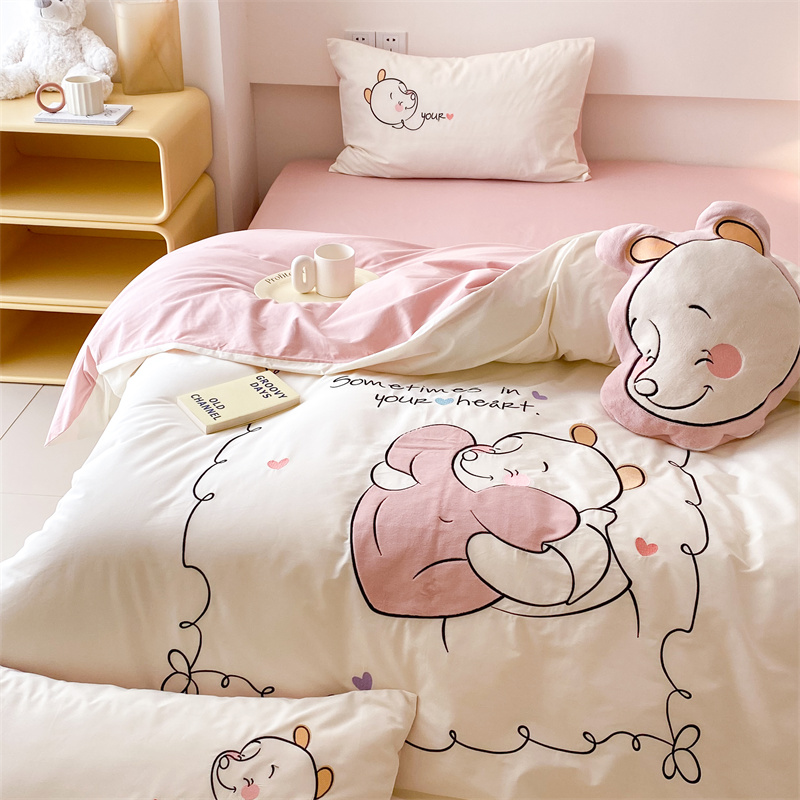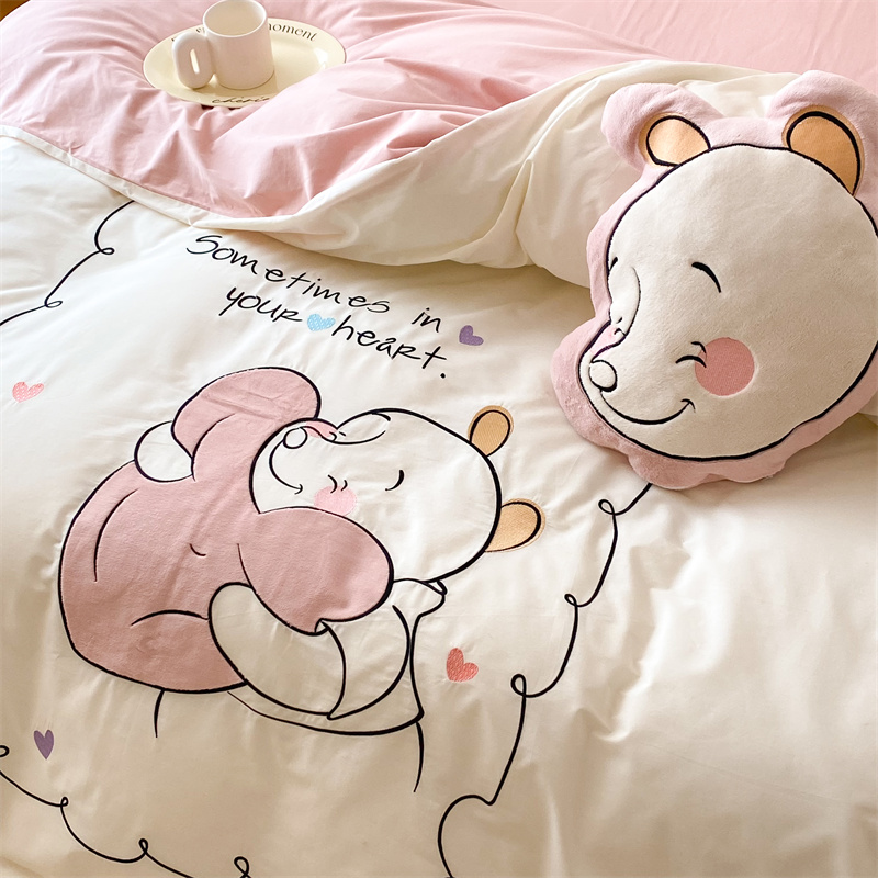 (总)朗莎家纺 2021新款贴布绣牛奶绒四件套,悠悠熊,唐老鸭
