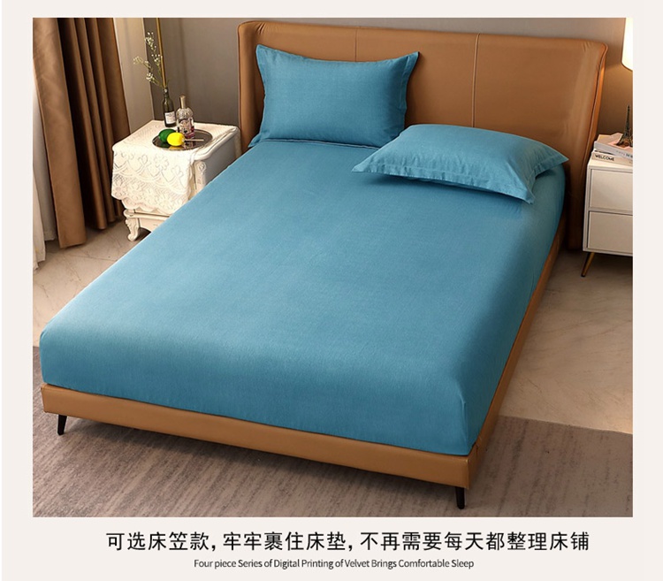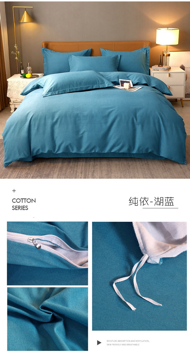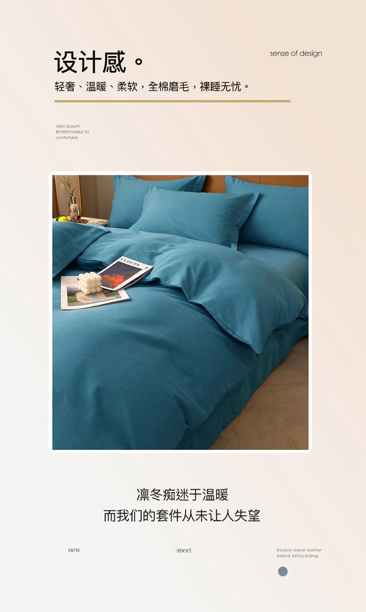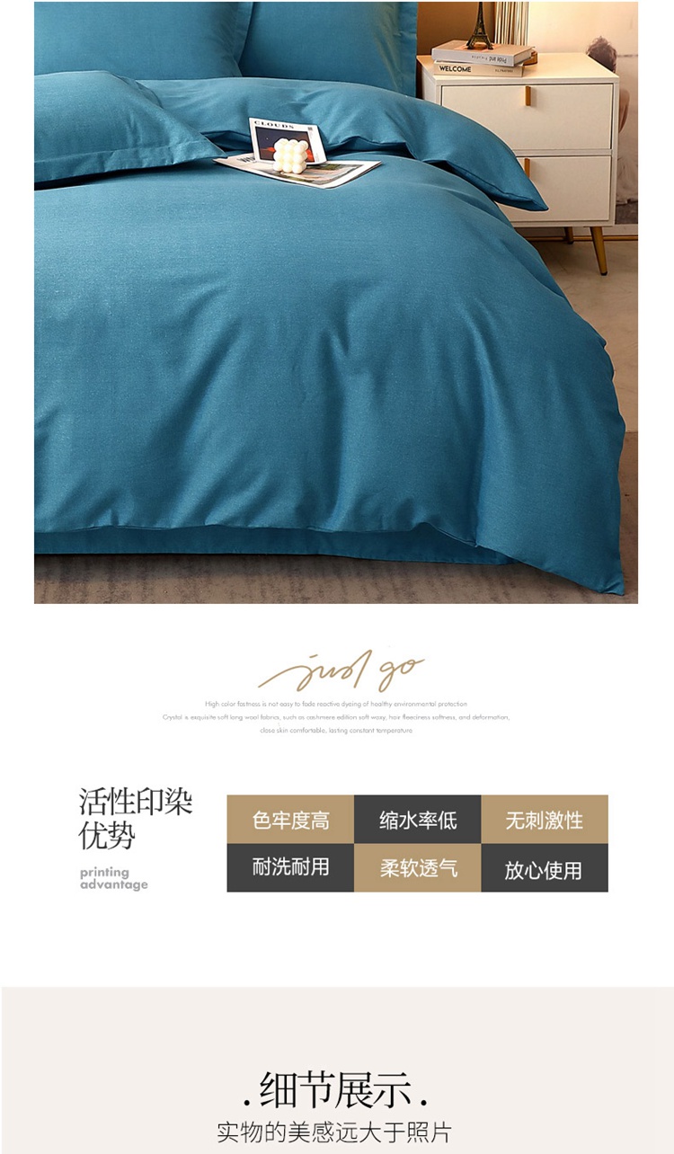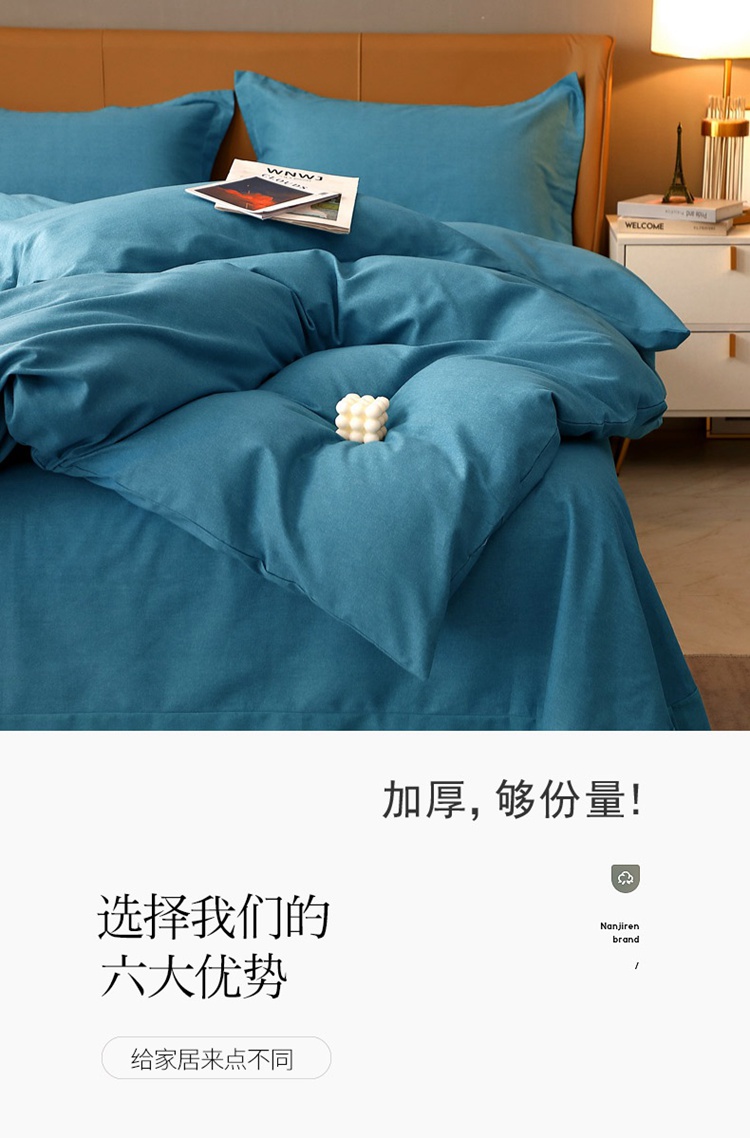 当前位置: 91家纺网 > 商品网购 > 床品套件 > 四件套 > 普通磨毛四件套 > 晶缦家纺 2022新款加厚全棉纯色生态磨毛多规格四件套 纯依-湖蓝