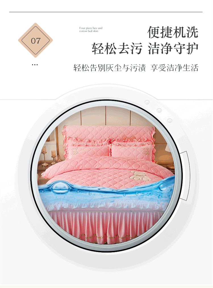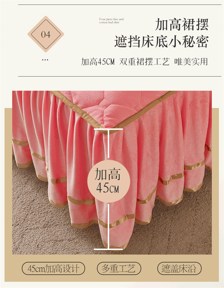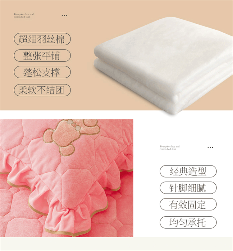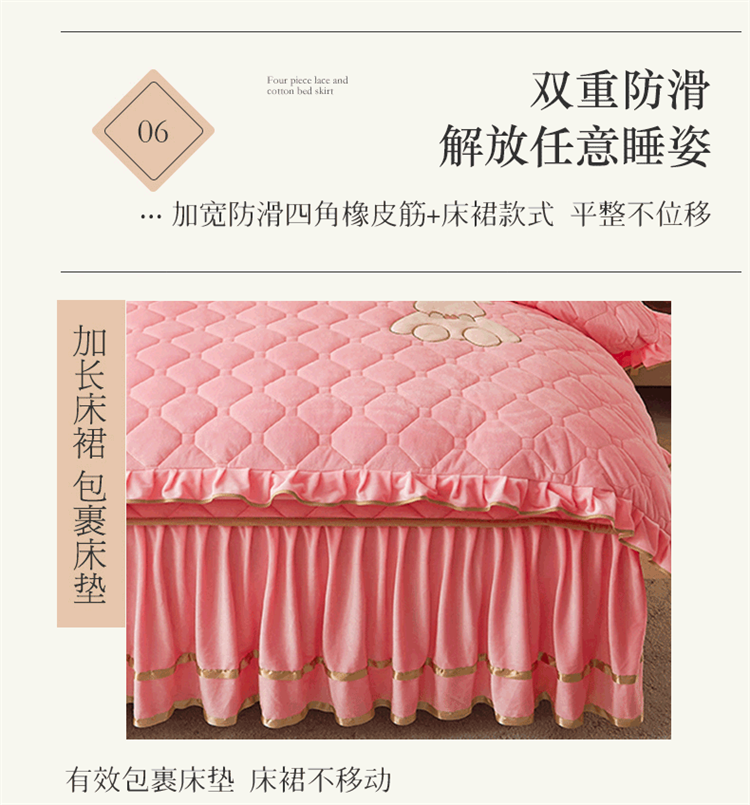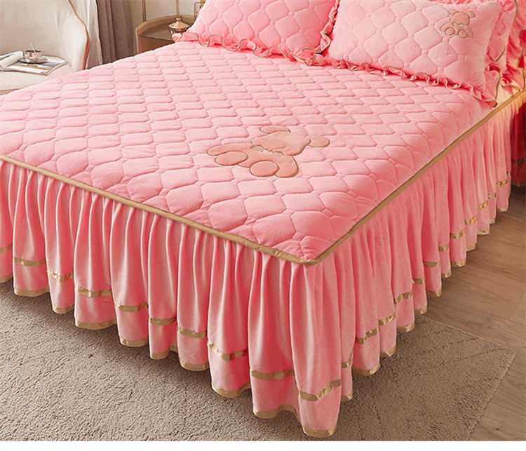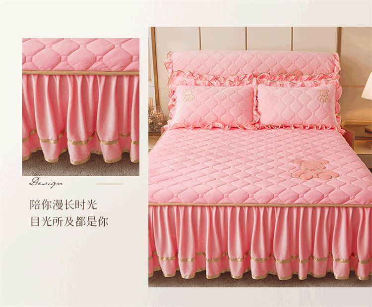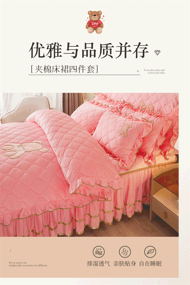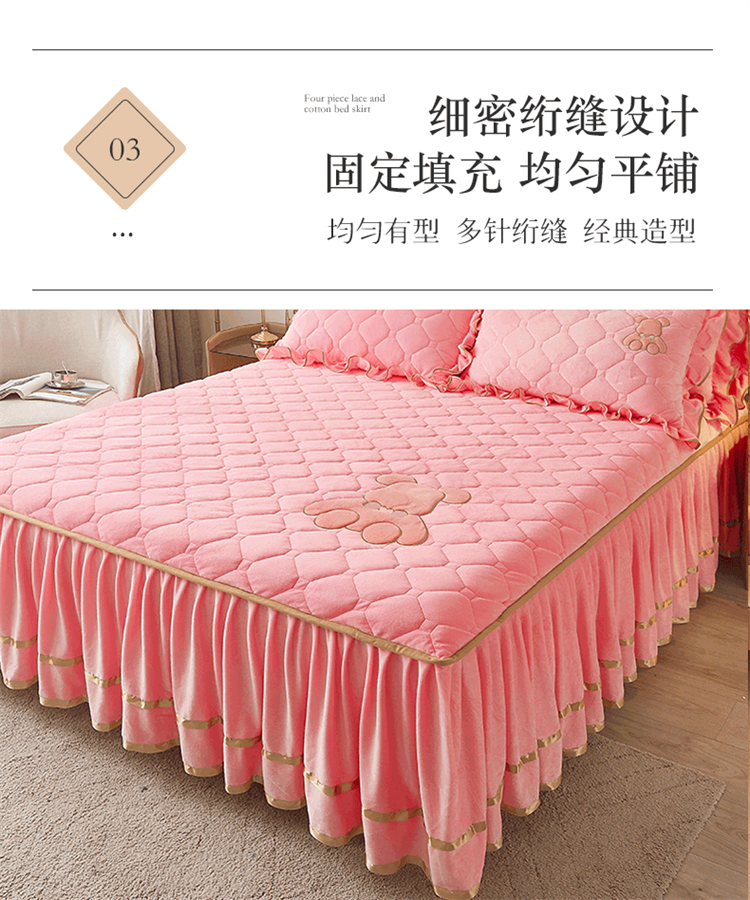 当前位置: 91家纺网 > 商品网购 > 床品套件 > 四件套 > 水晶绒四件套 > 屹成家纺 2024新款亲肤水晶绒夹棉床裙四件套-小熊款 粉玉