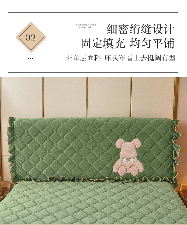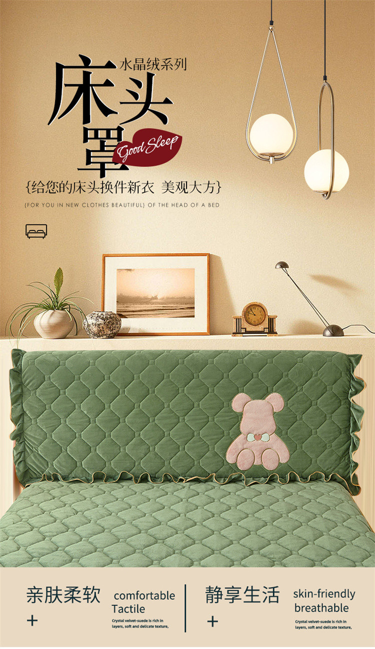 屹成家纺 2024新款水晶绒床头罩-小熊款 橄榄緑