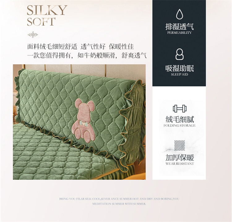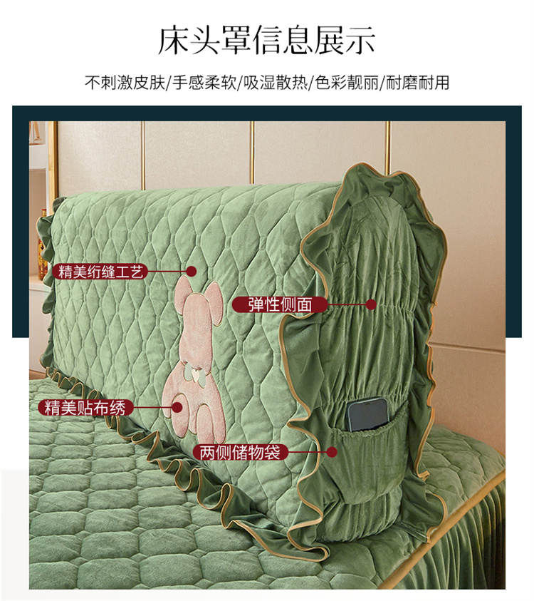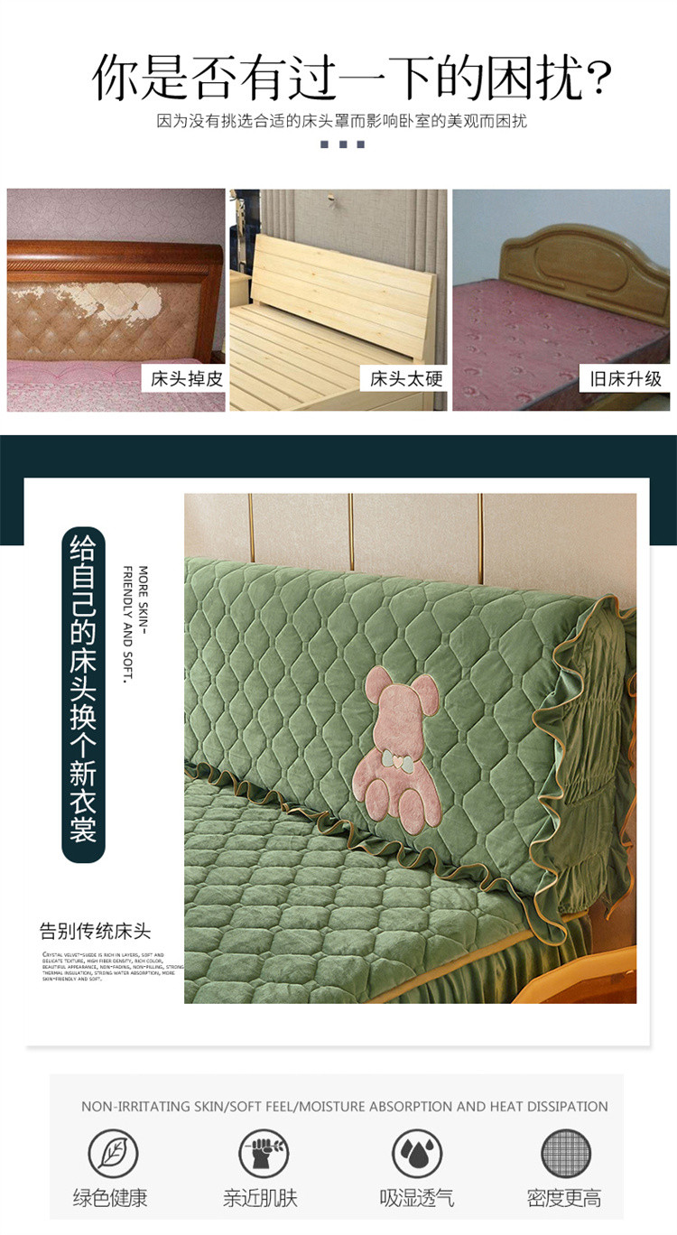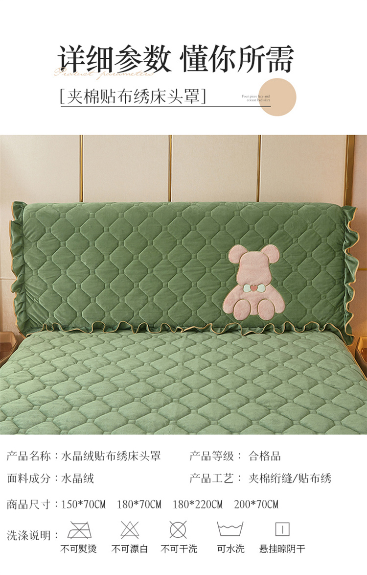 商品名称:屹成家纺 2024新款水晶绒床头罩-小熊款 橄榄緑