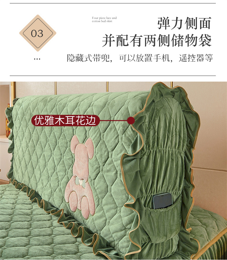 (总)屹成家纺2025新款水晶绒夹棉绗缝蕾丝床裙三件套(塞纳河畔)床裙单件起售价不低于105元,大红,豆沙,翡翠绿,粉玉,橄榄绿,蔚蓝,银灰