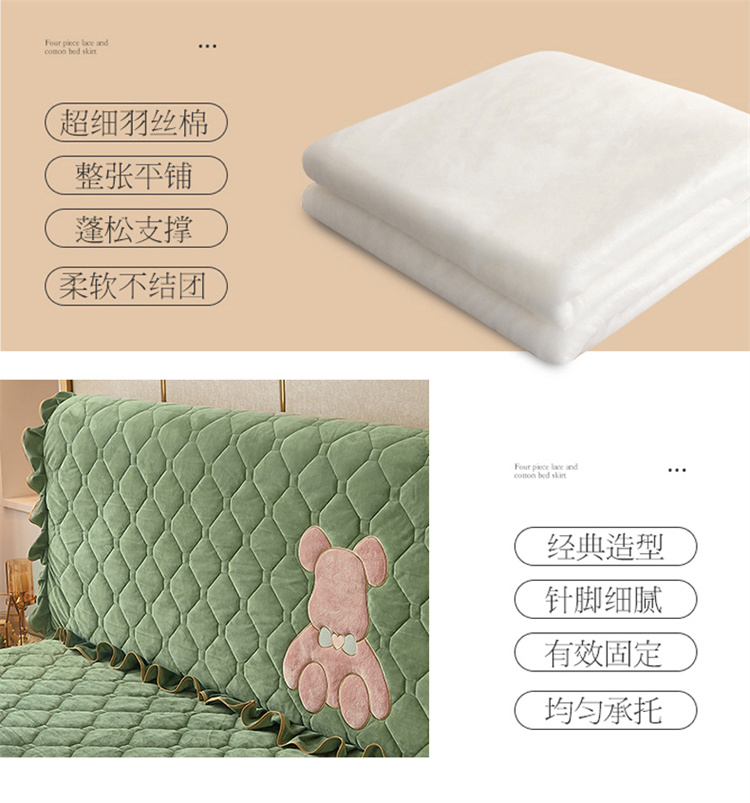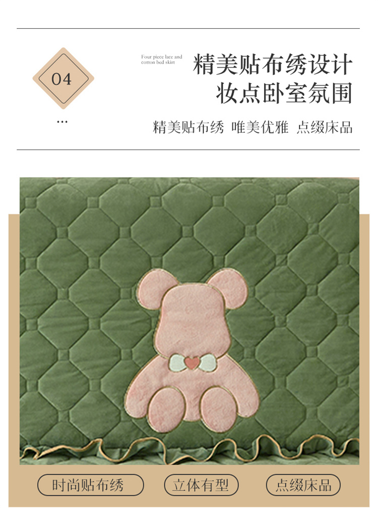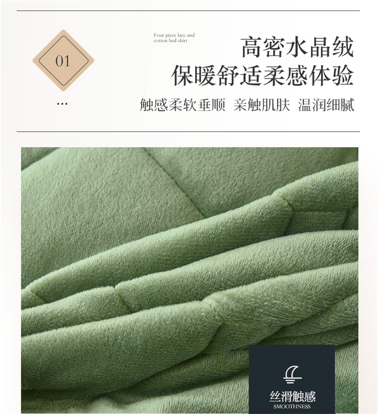 (总)屹成家纺2025新款水晶绒夹棉绗缝床裙四件套(塞纳河畔)四件套起售价不低于230元,大红,豆沙,翡翠绿,粉玉,橄榄绿,蔚蓝,银灰