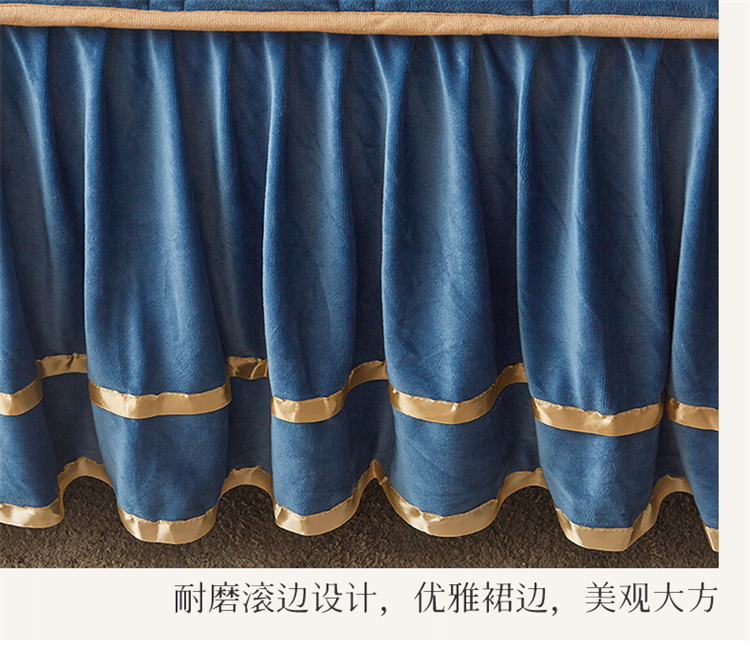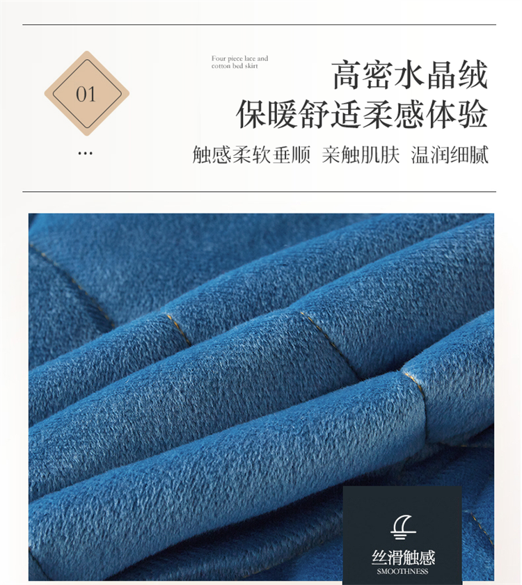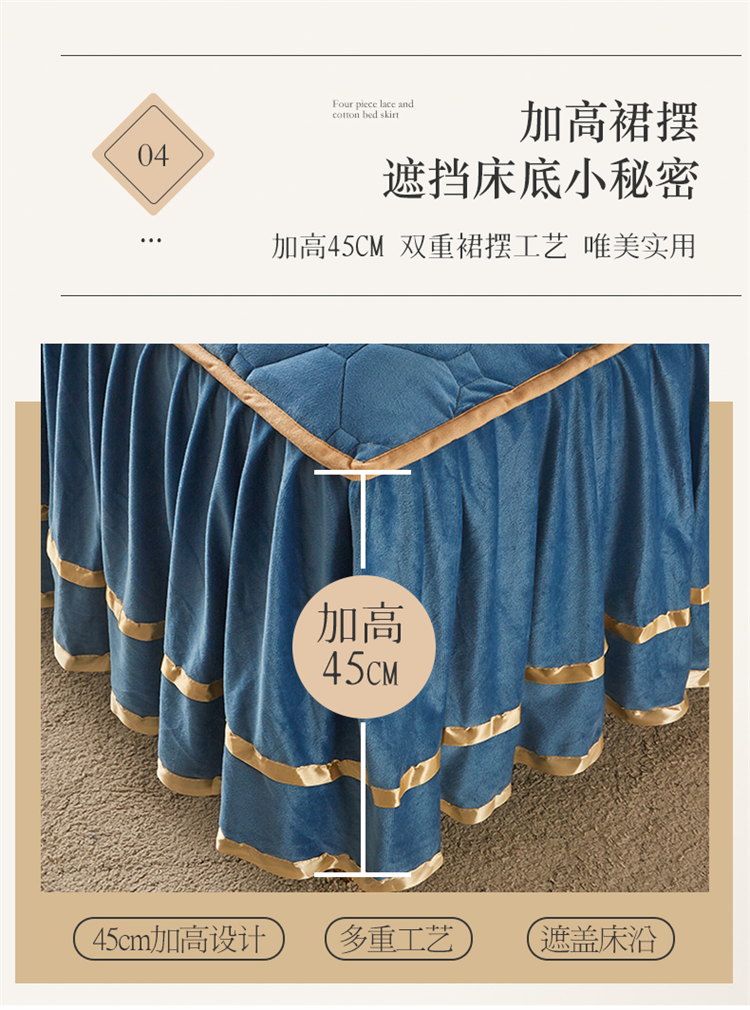 (总)屹成家纺2025新款水晶绒夹棉绗缝蕾丝床裙三件套(塞纳河畔)床裙单件起售价不低于105元,大红,豆沙,翡翠绿,粉玉,橄榄绿,蔚蓝,银灰