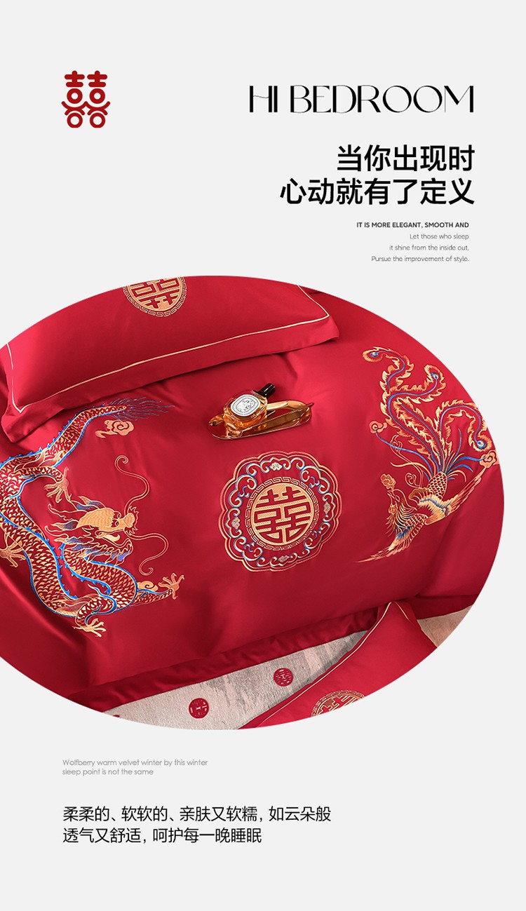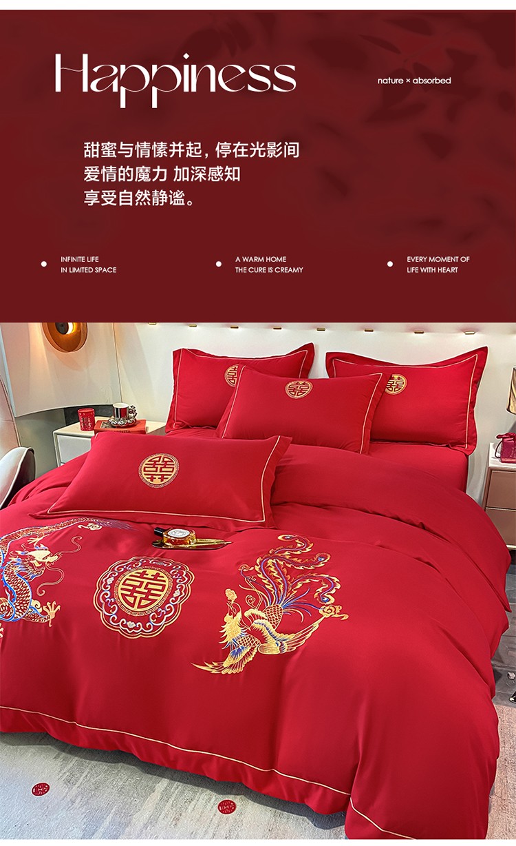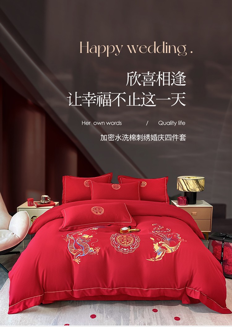 (总)花愿(原花纪) 2025新款水洗棉刺绣婚庆四件套系列,丹枫迎喜,欢喜,良缘,龙凤欢喜,玫瑰之恋,美满,如意,天禧,唯一,喜爱,心心相印,幸福,永恒之恋,钟爱一生