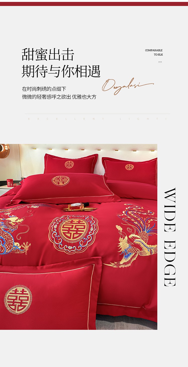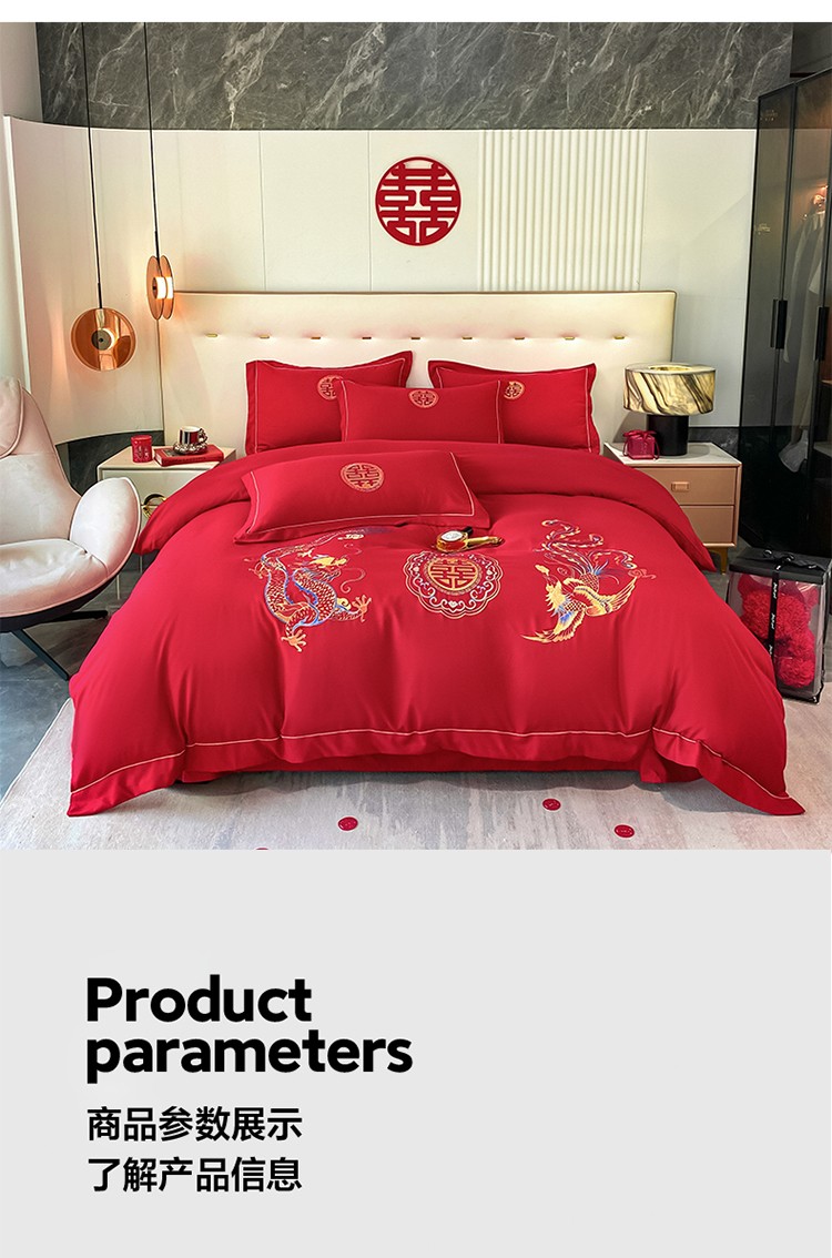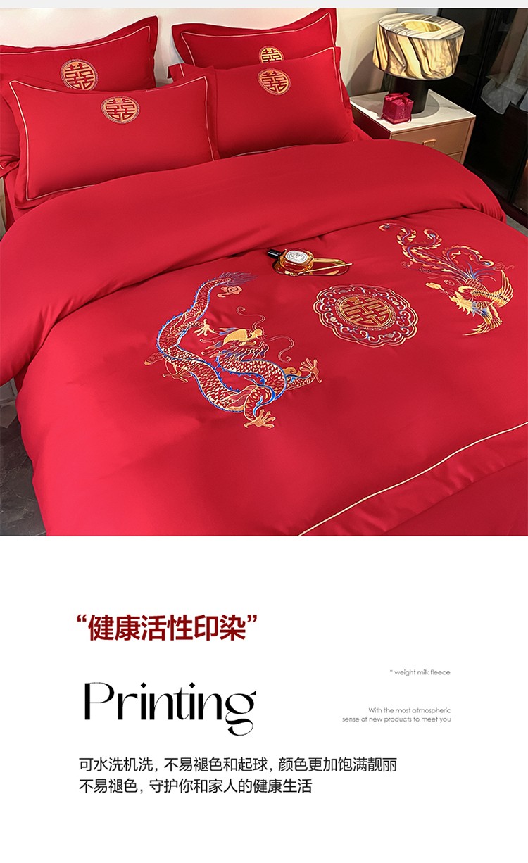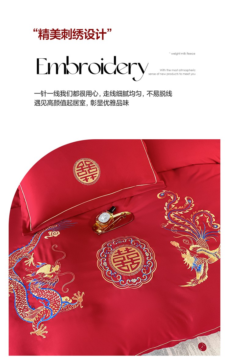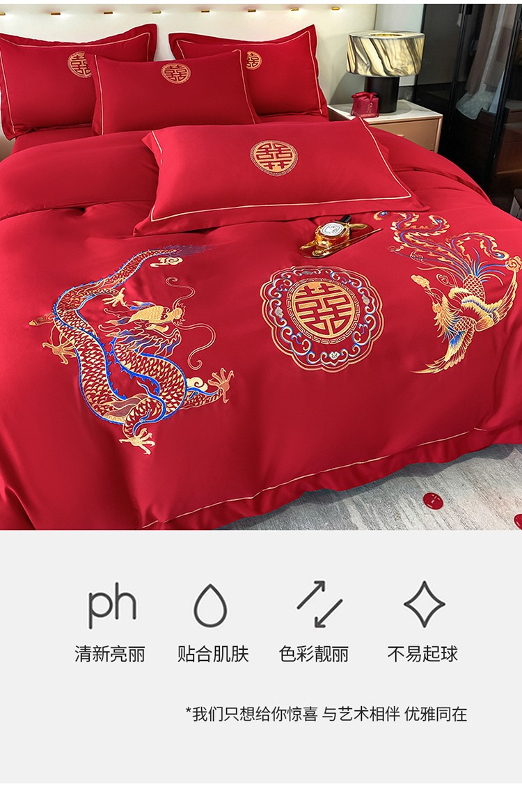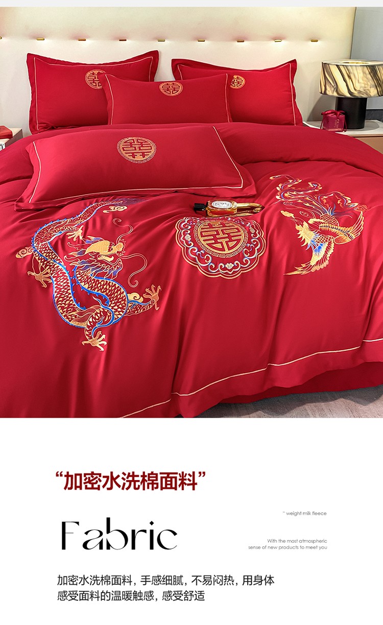 商品名称:花愿 2025新款加密水洗棉刺绣婚庆四件套 龙凤欢喜