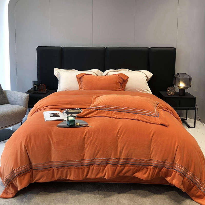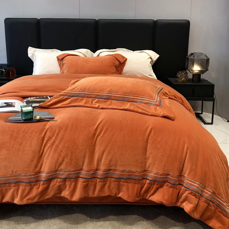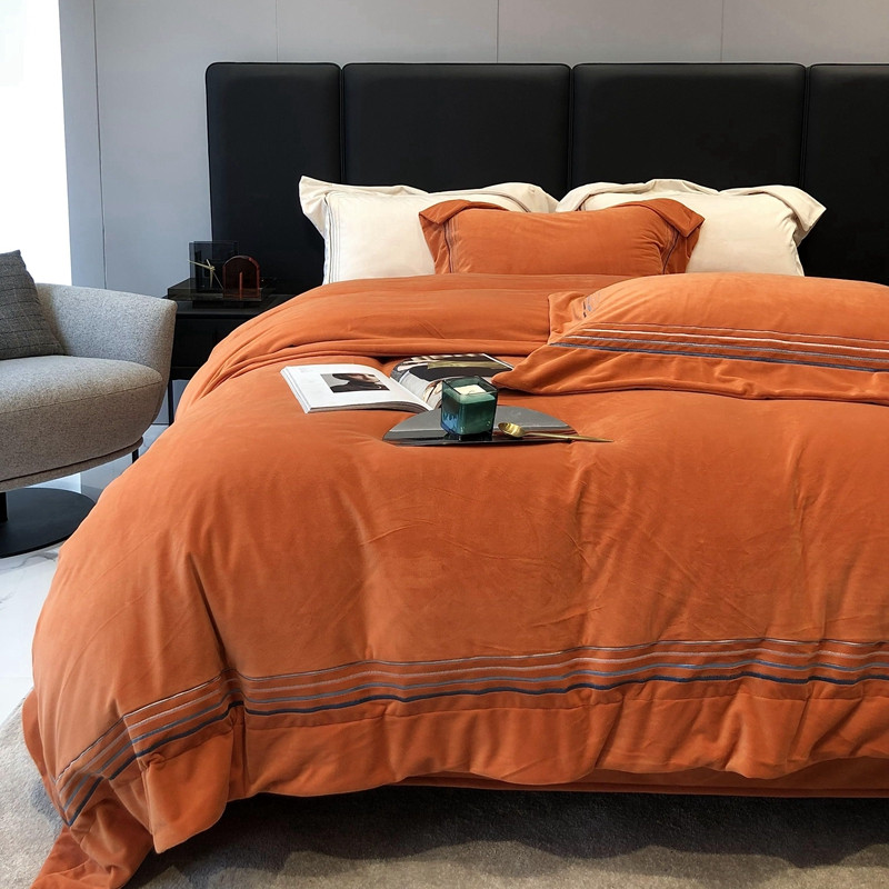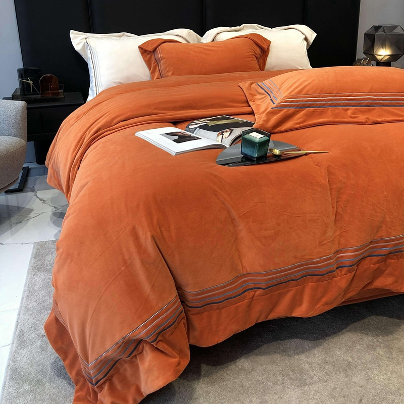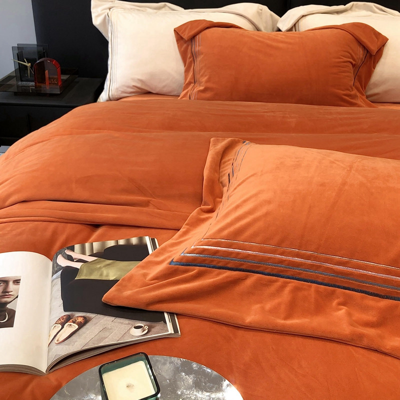 商品名称:太古汇 2022新款婴儿绒绣花四件套-米兰系列 米兰-托帕橙