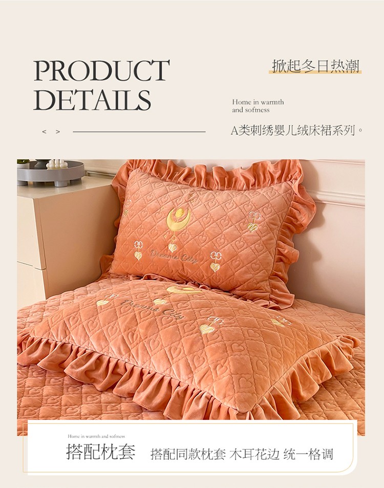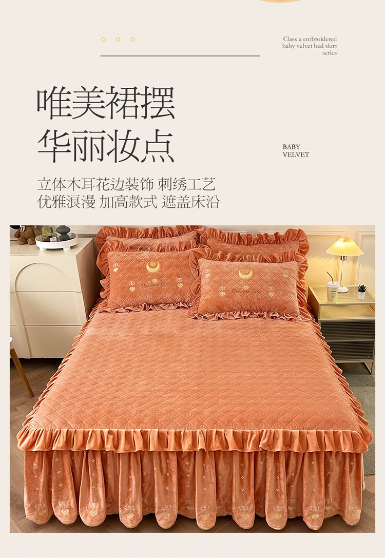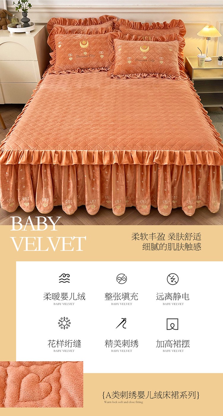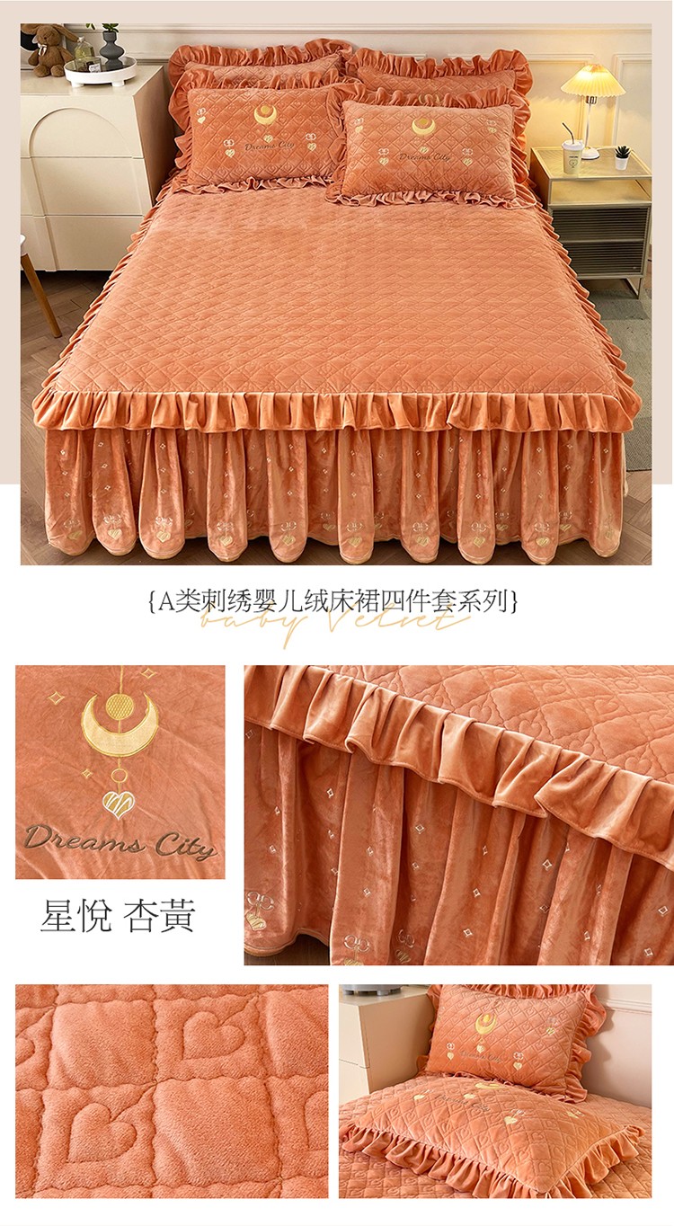 商品名称:宜凡家纺 2022新款A类婴儿绒床裙星悦系列三件套 星悦-杏黄