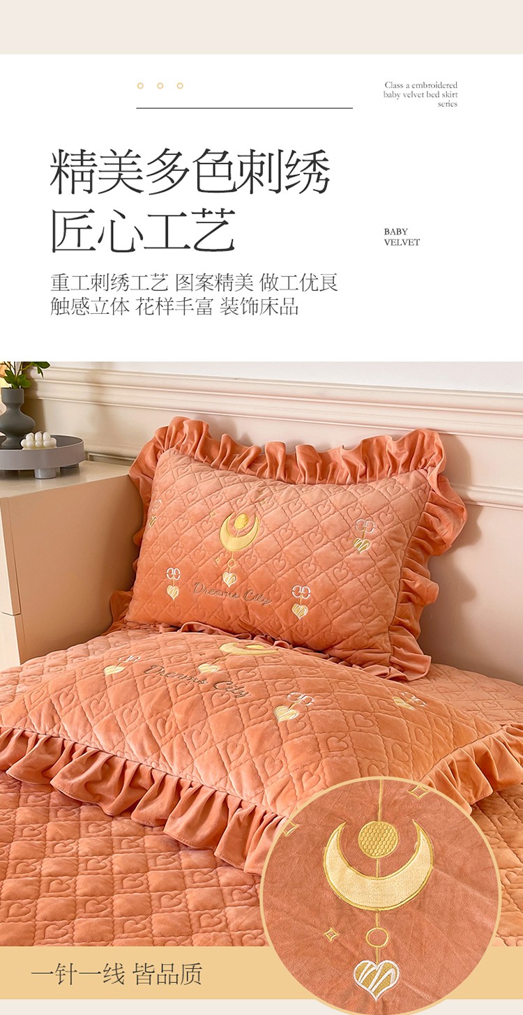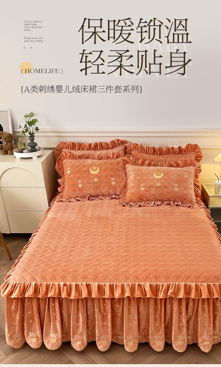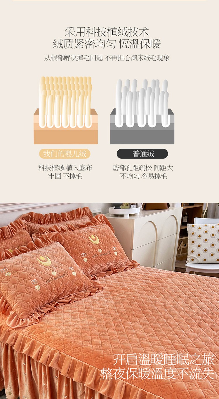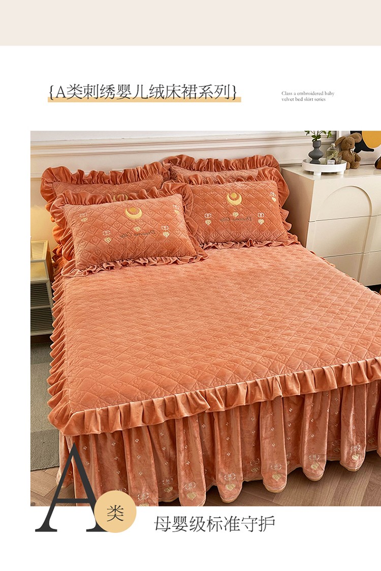 商品名称:宜凡家纺 2022新款A类婴儿绒床裙星悦系列三件套 星悦-杏黄