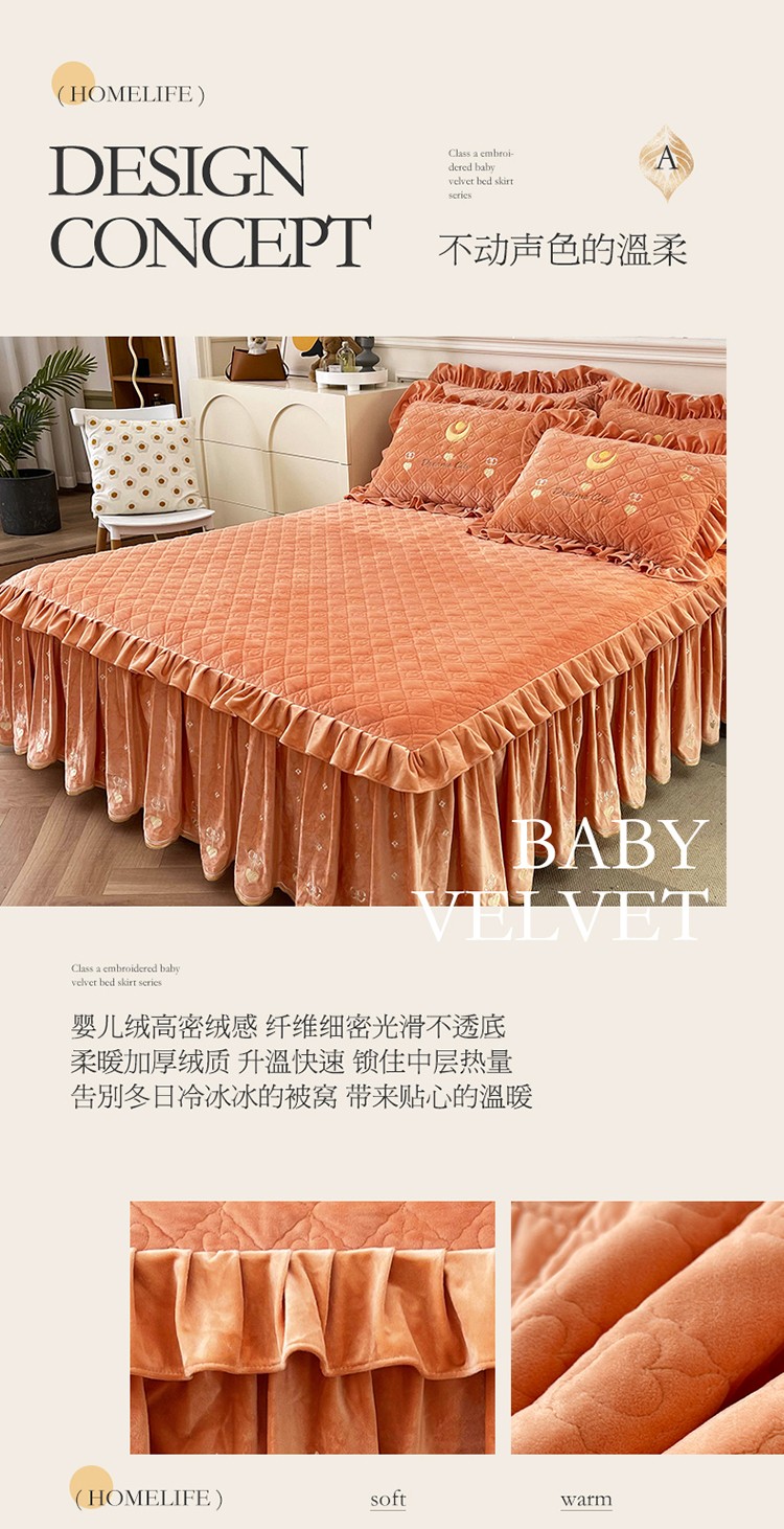 (总)宜凡家纺 2025新款婴儿绒压花全夹棉床裙四件套,韵雅-中国红,韵雅-黑天鹅