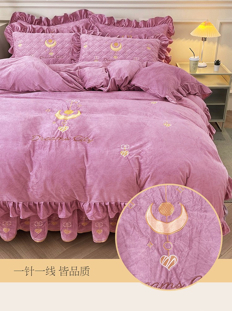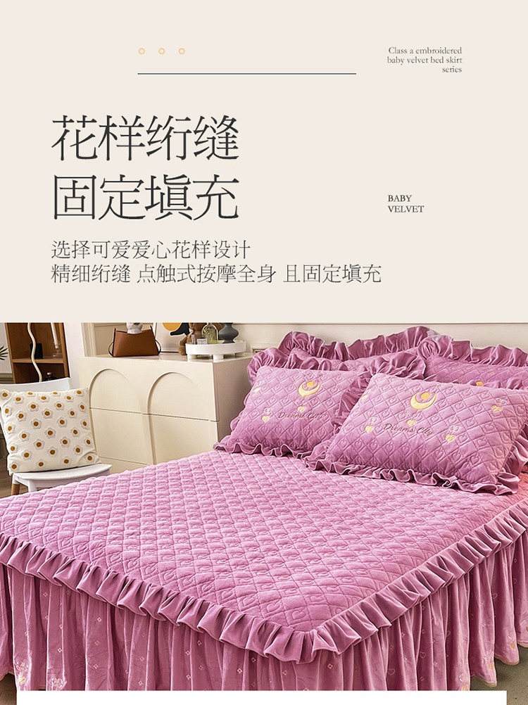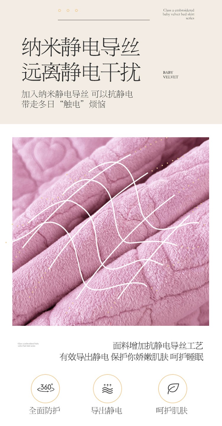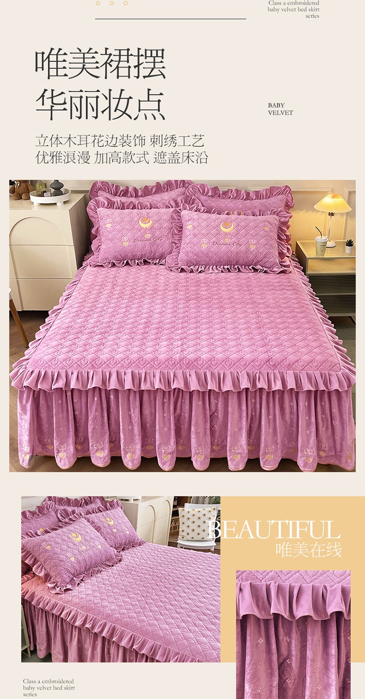 当前位置: 91家纺网 > 商品网购 > 床品套件 > 四件套 > 宝宝绒四件套 > 宜凡家纺 2022新款A类婴儿绒床裙星悦系列四件套 星悦-香芋紫