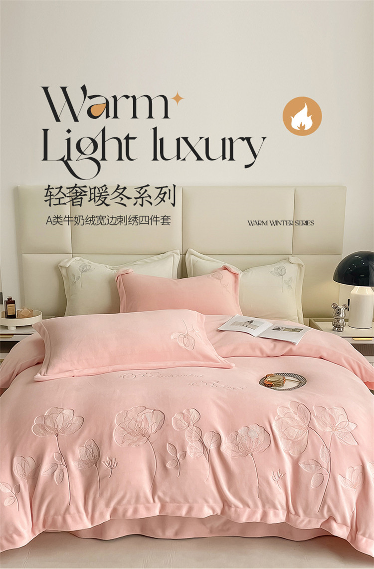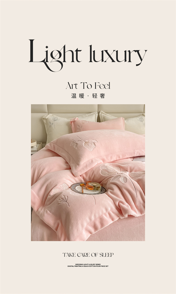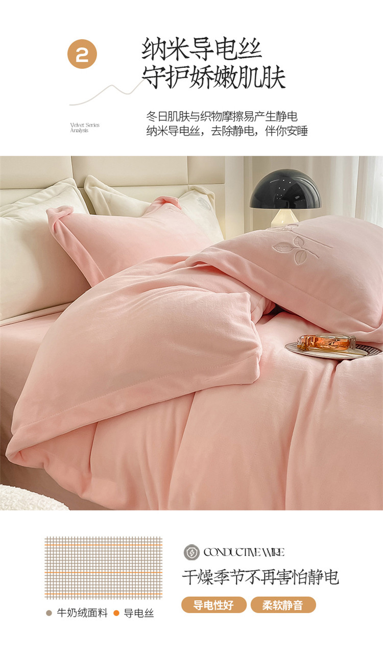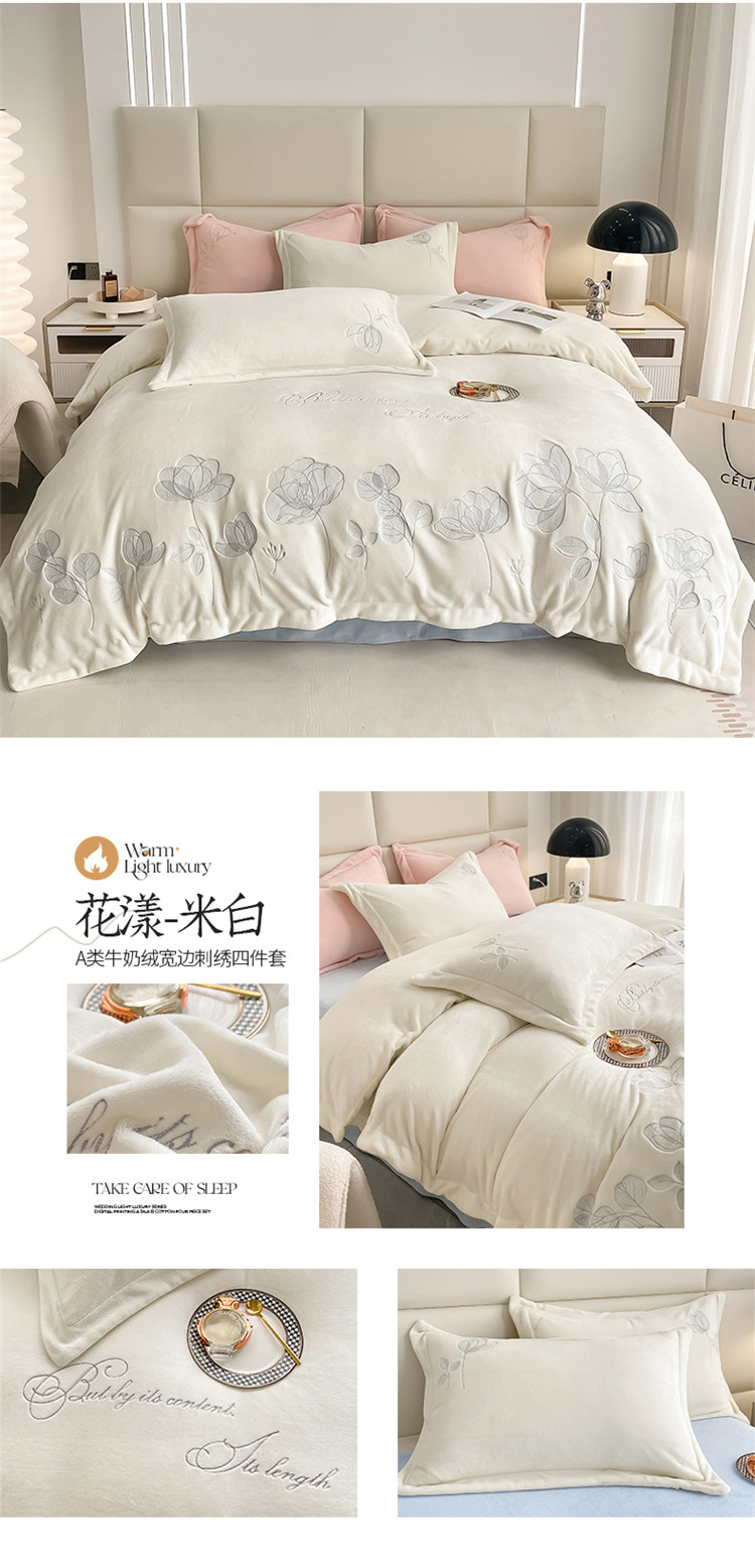 (总)懒猫家纺 2025新款亲肤舒适牛奶绒四件套-可可小姐系列,可可小姐-瓷白,可可小姐-水粉