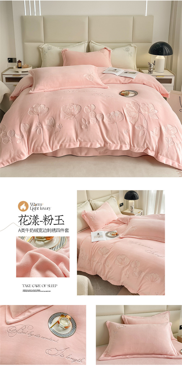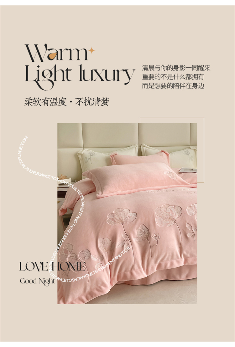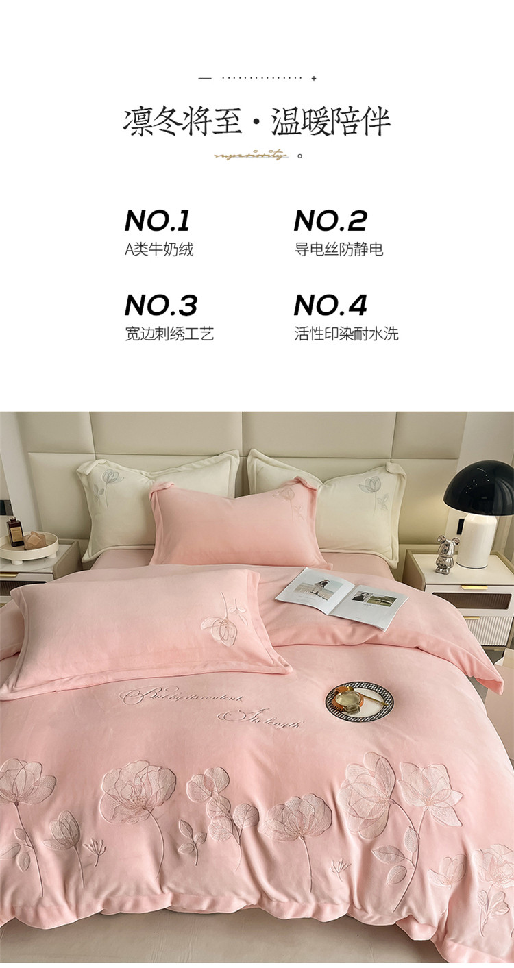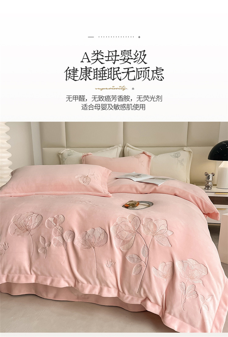 (总)懒猫家纺 2025新款亲肤舒适牛奶绒四件套-千寻花语系列,千寻花语-豆沙,千寻花语-玫紫,千寻花语-米咖,千寻花语-奶杏,千寻花语-雅绿,千寻花语-银灰