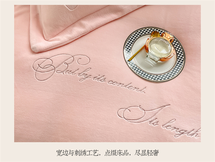 (总)懒猫家纺 2025新款A类贝壳绣纯色海獭绒四件套,橘子红,落霞紫,玫瑰粉,拿铁咖,暖茶棕,清水绿,柔雾灰,桃喜粉,杏仁白