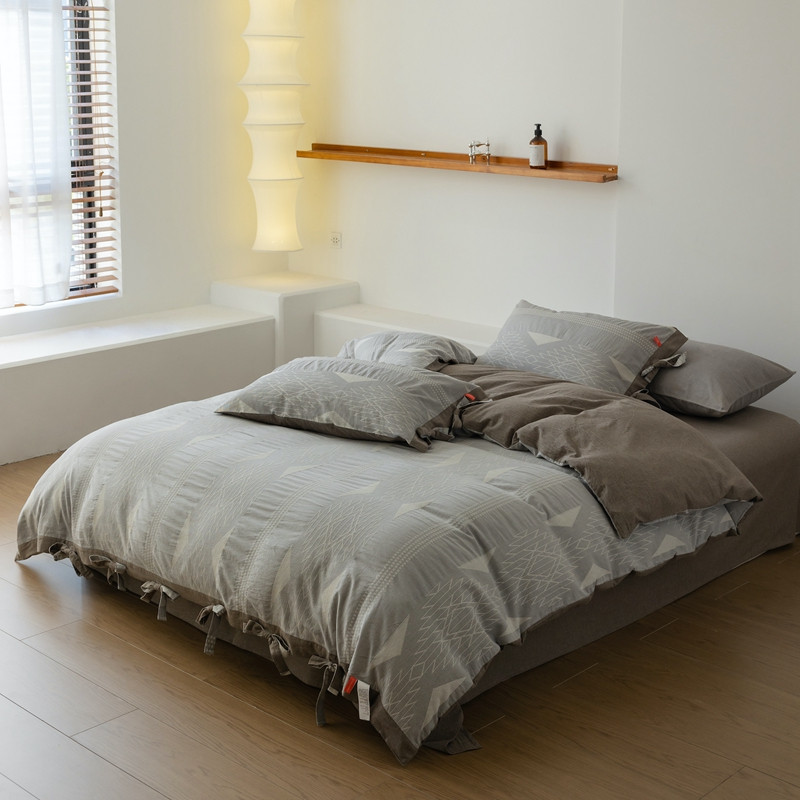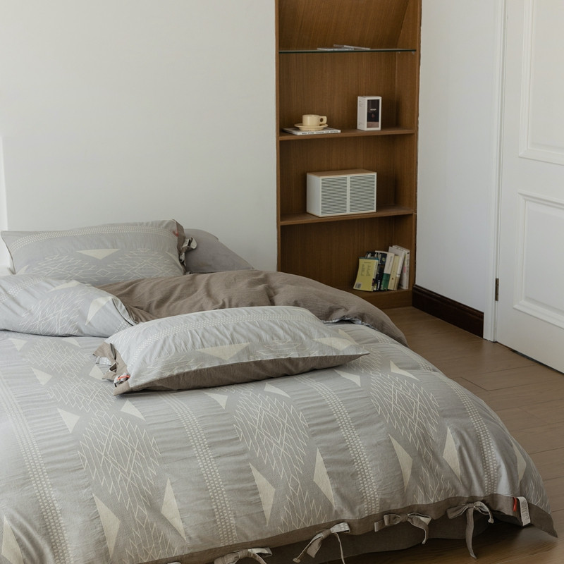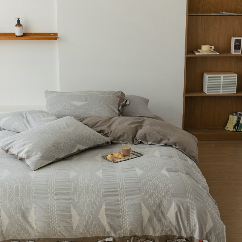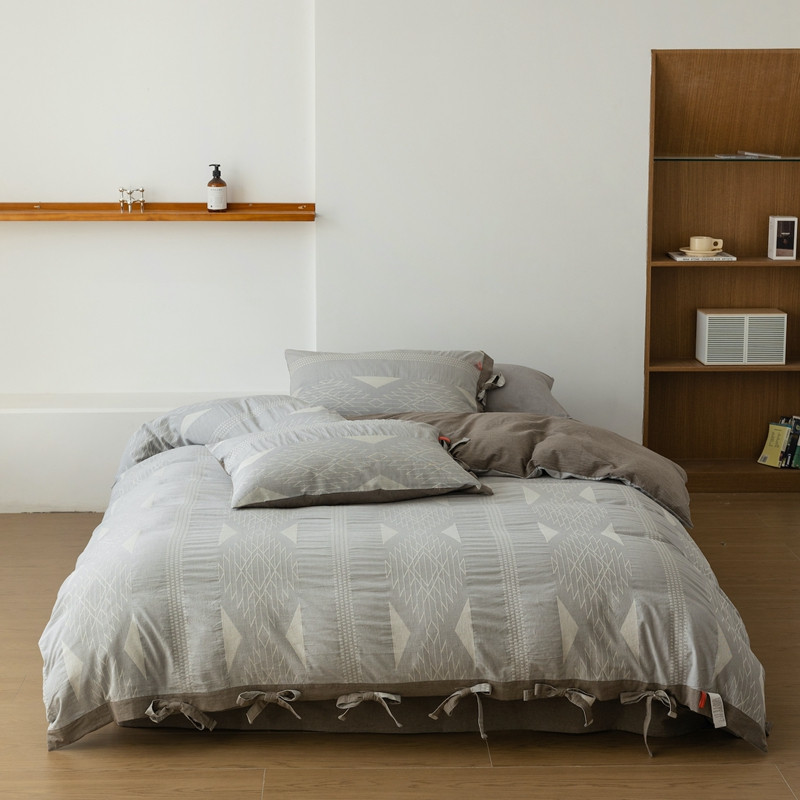 (总)安莱生活 2025春夏新款空气层色织提花四件套南阳假日系列,南阳假日-灰咖,南阳假日-卡其,南阳假日-银灰