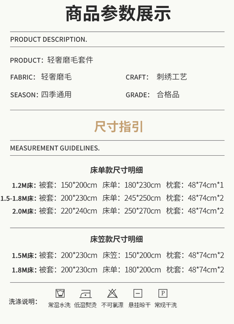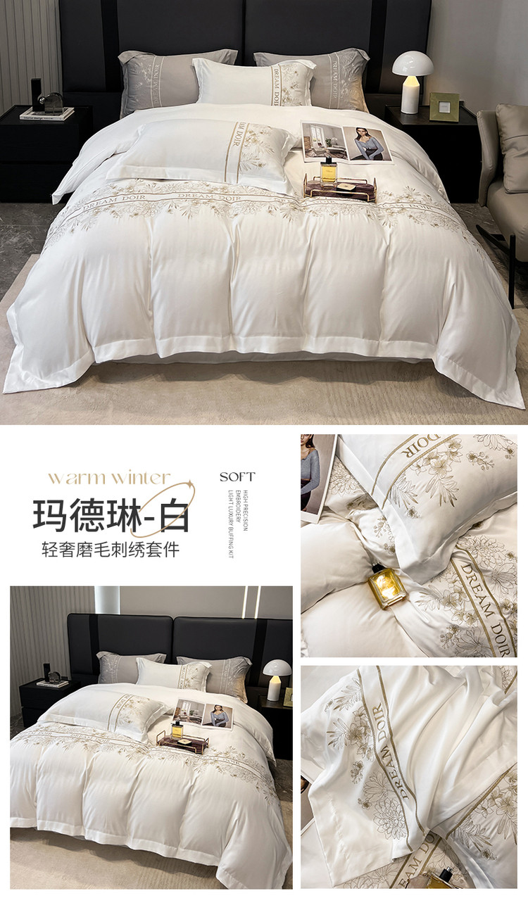 商品名称:优悦 2023新款轻奢磨毛系列四件套-玛德琳 白