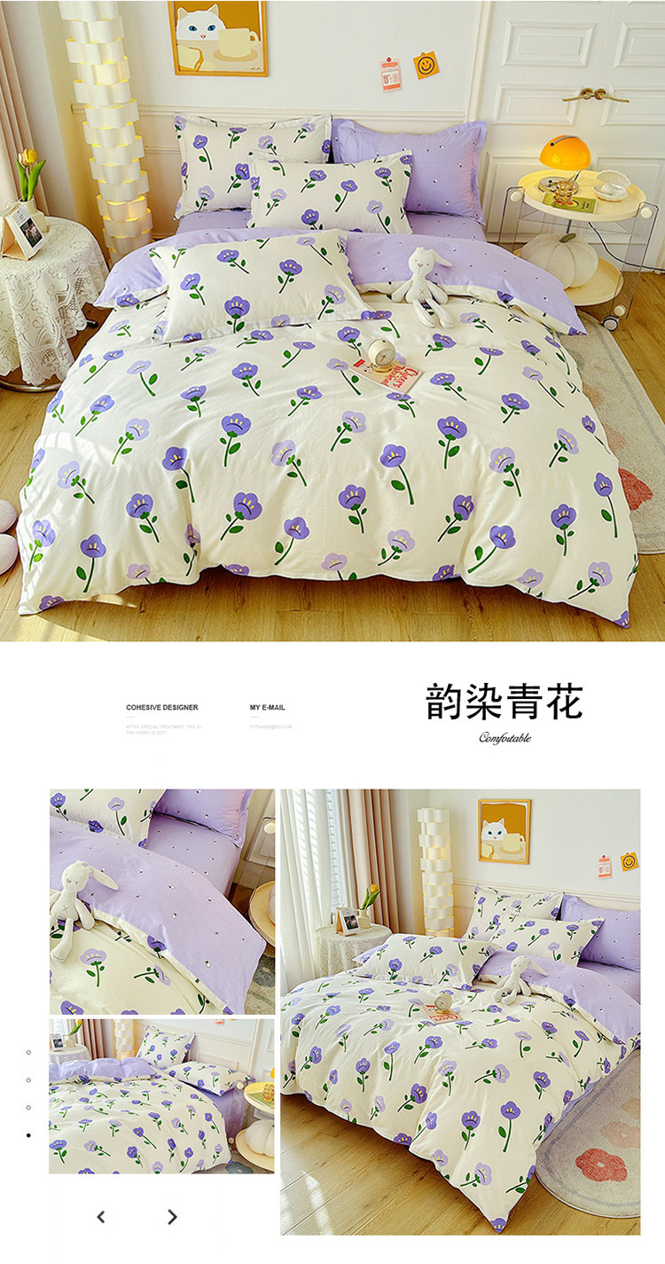 当前位置: 91家纺网 > 商品网购 > 床品套件 > 四件套 > 全棉普通四件套 > 卡普纯棉全棉四件套13070喷气床单款床笠款三件套 韵染青花