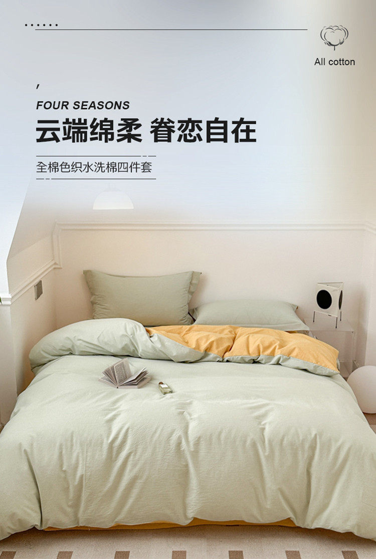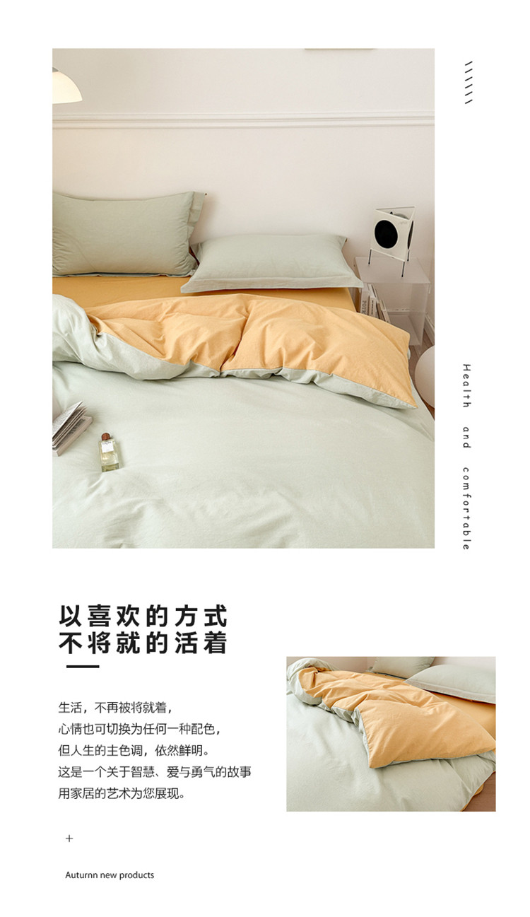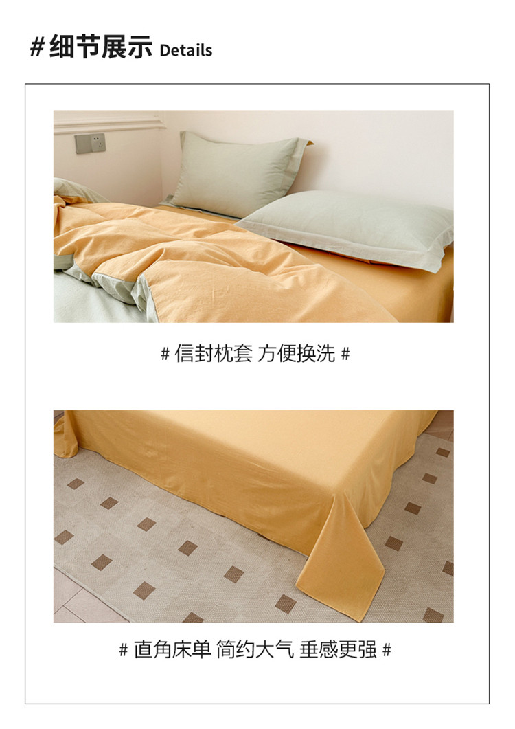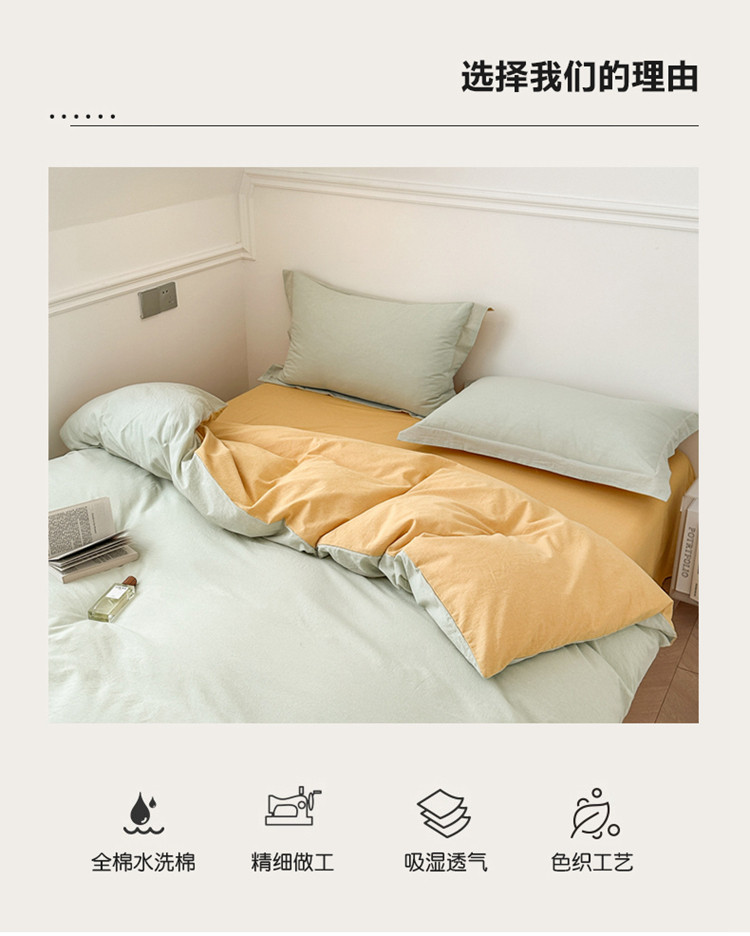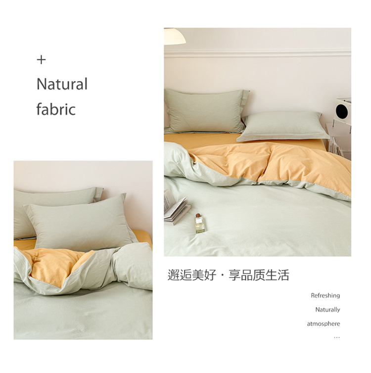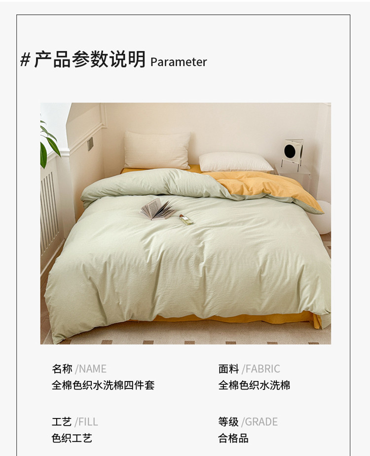 当前位置: 91家纺网 > 商品网购 > 床品套件 > 四件套 > 水洗棉四件套 > 嘉汀兰 2023新款全棉色织水洗棉纯色撞色款四件套 春日来信
