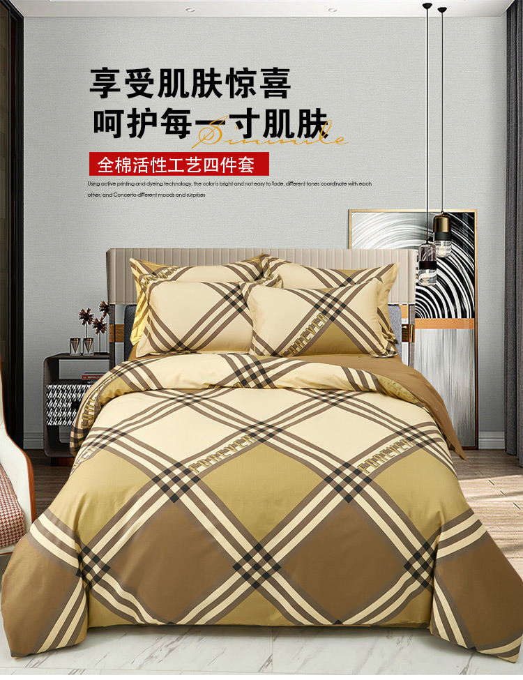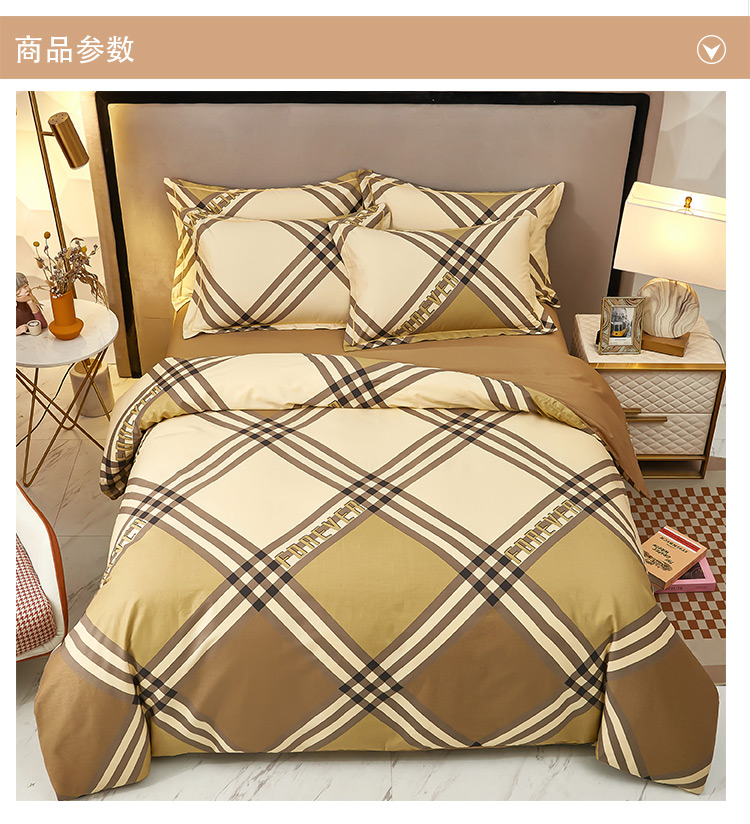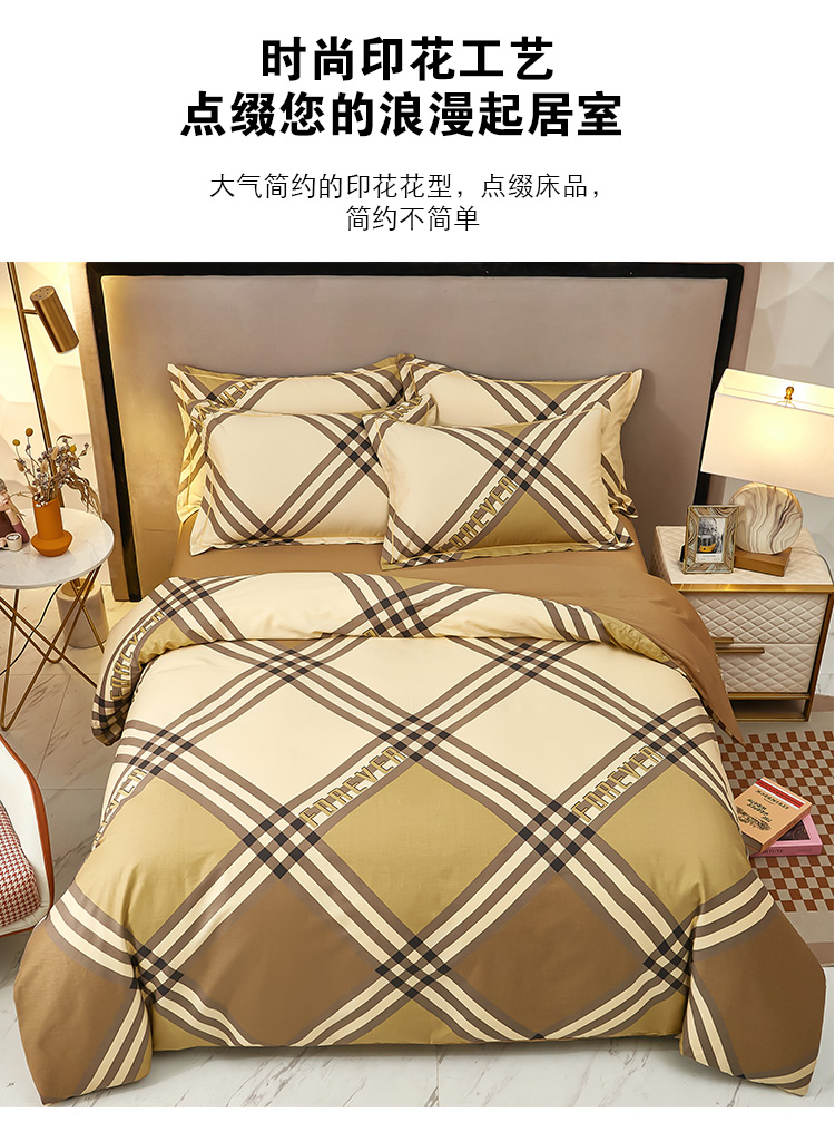 商品名称:雲归梦2023新款13372全棉活性大版印花简约居家四件套 杰菲咖
