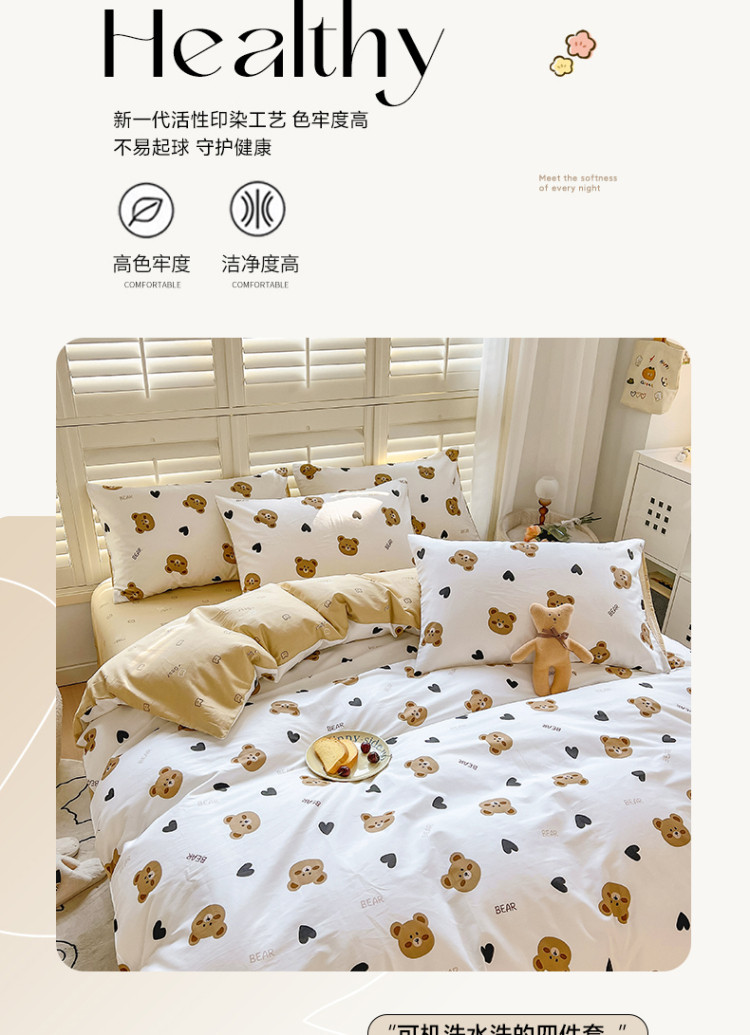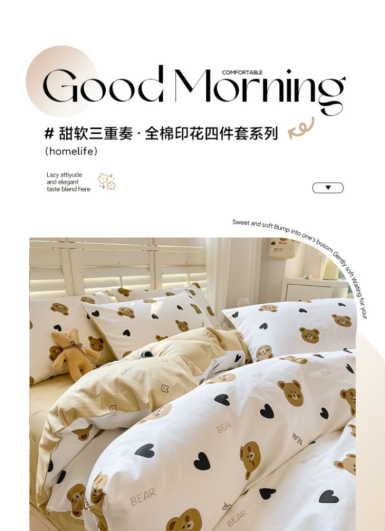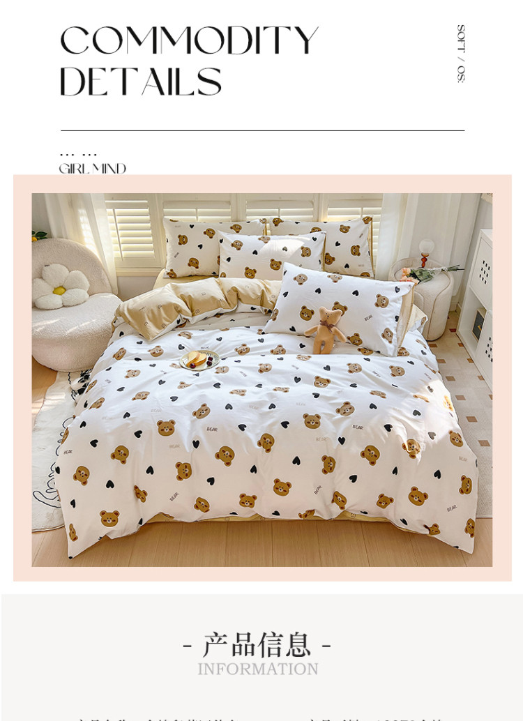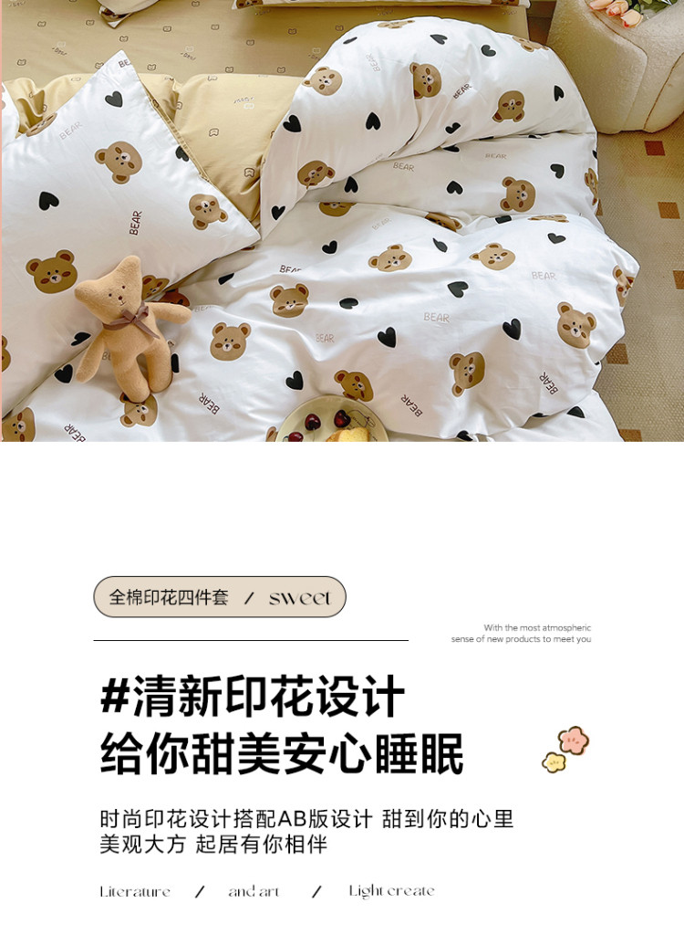 当前位置: 91家纺网 > 商品网购 > 床品套件 > 四件套 > 全棉普通四件套 > 百寐 2024小清新碎花卡通13372全棉四件套纯棉床单床笠款 心心熊
