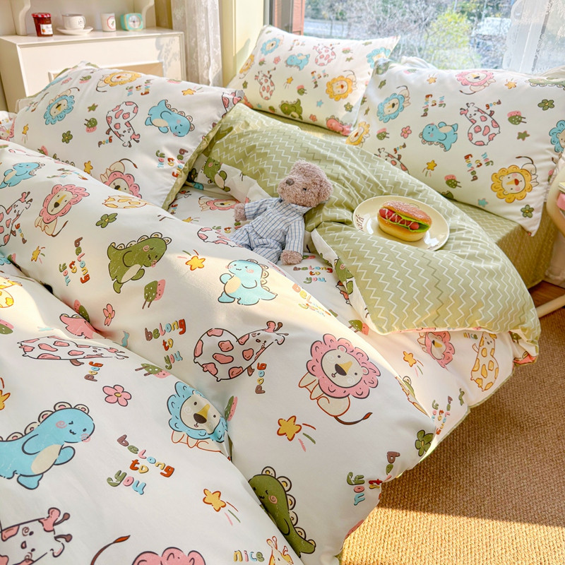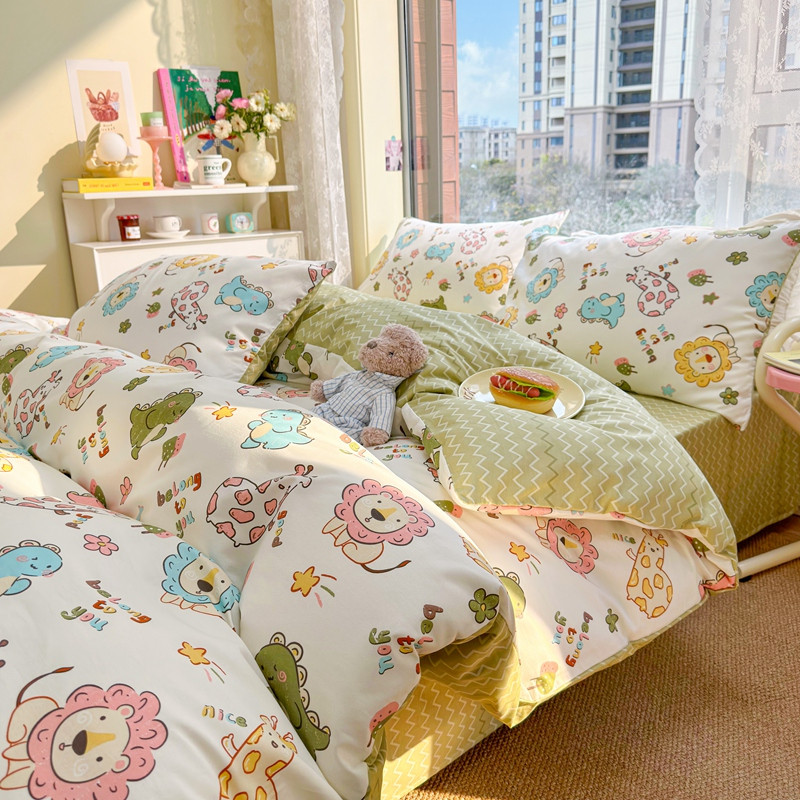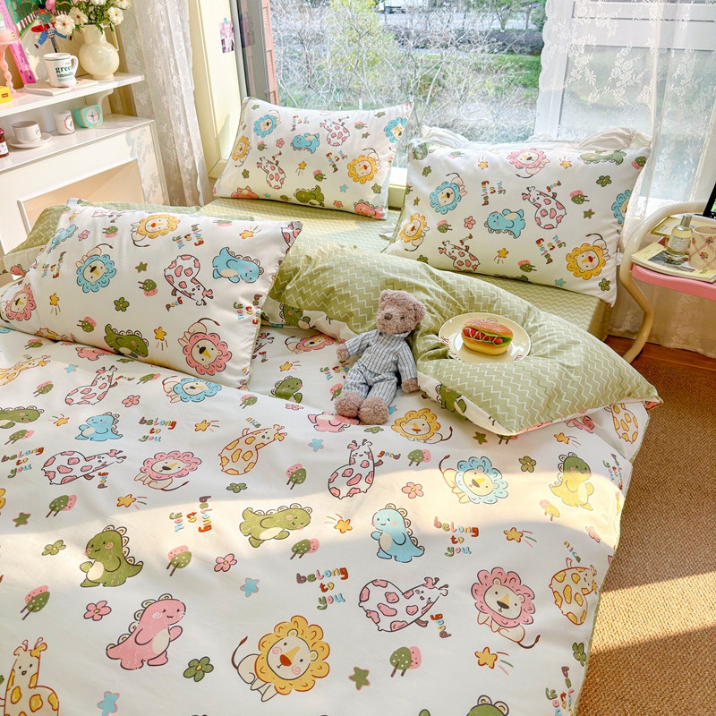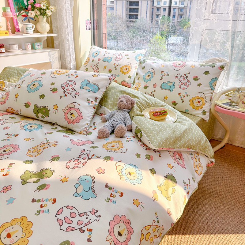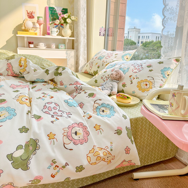 商品名称:沐辰 2023新款13372全棉印花四件套-萌趣系列 动物乐园