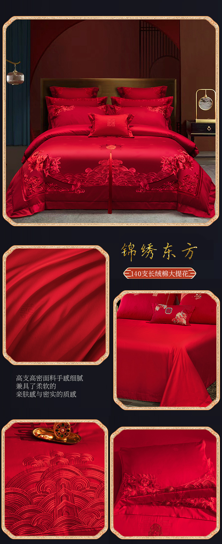 (总)蒂爵 全棉纯棉新疆长绒棉系列多件套,大业有成(红)