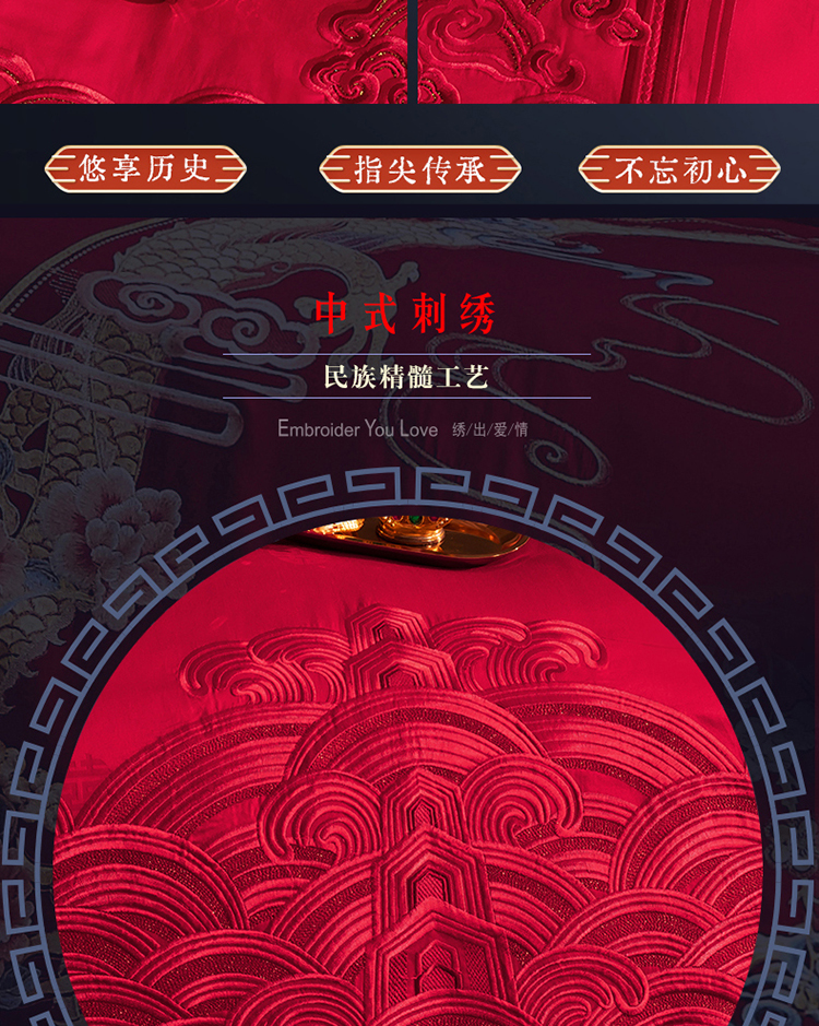 (总)蒂爵 全棉纯棉提花顶奢重工绣花工艺款婚庆四件套多件套,龙凤传奇,禧龙禧凤,缘定江山,挚爱一生