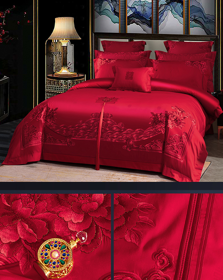 (总)蒂爵 全棉纯棉长绒棉大绣花婚庆四件套,百喜纳福,百子添福,多子多福,锦绣良缘,龙凤添喜,盛世花开