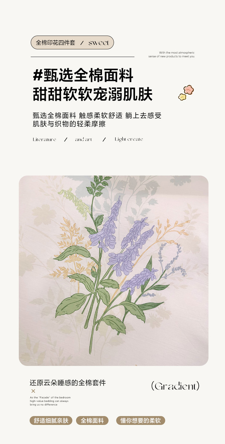 (总)洺兰家居 2026年新疆长绒棉100支天丝棉高端工艺款床单床笠四件套床上用品,淡若清香,陌上花开,羽墨