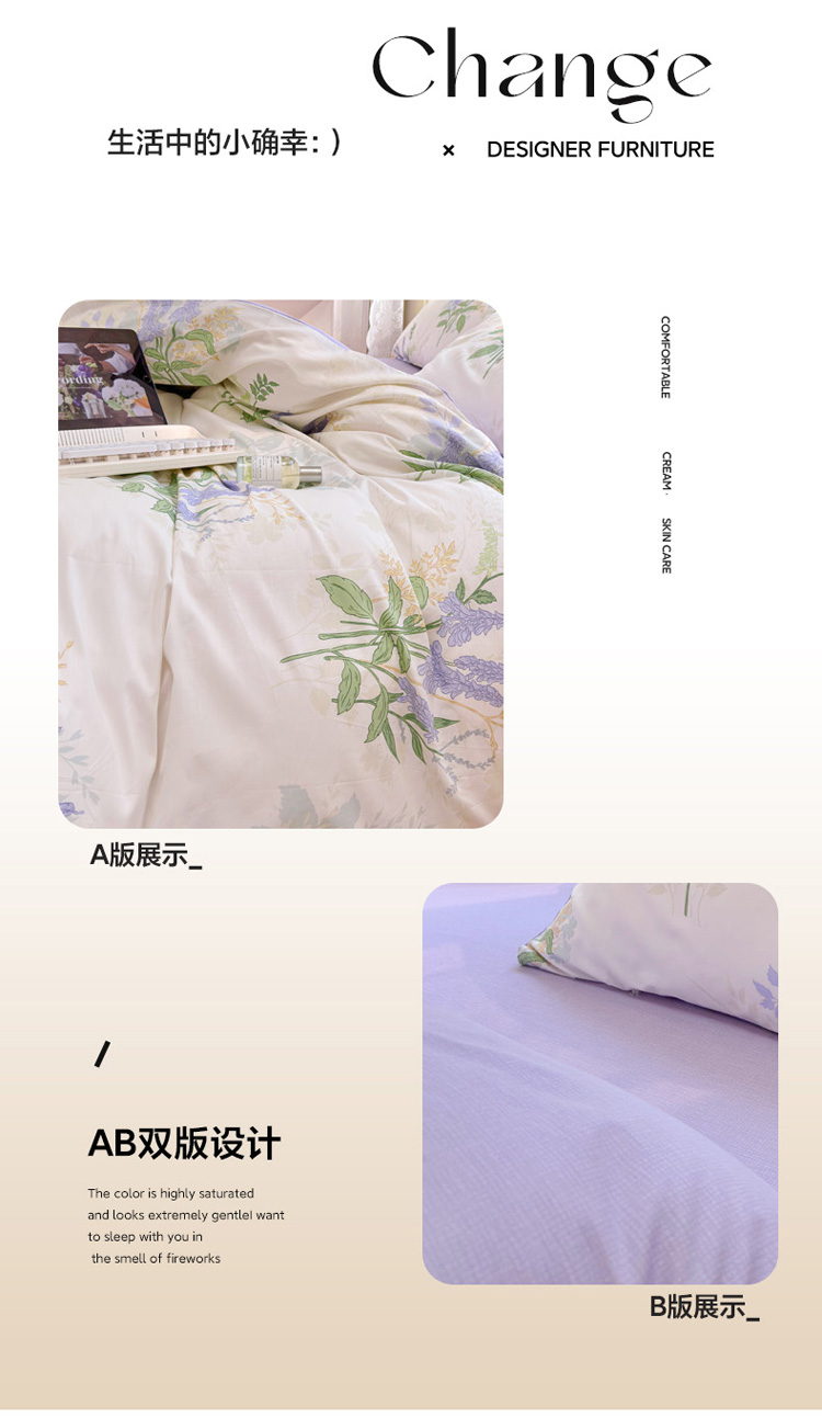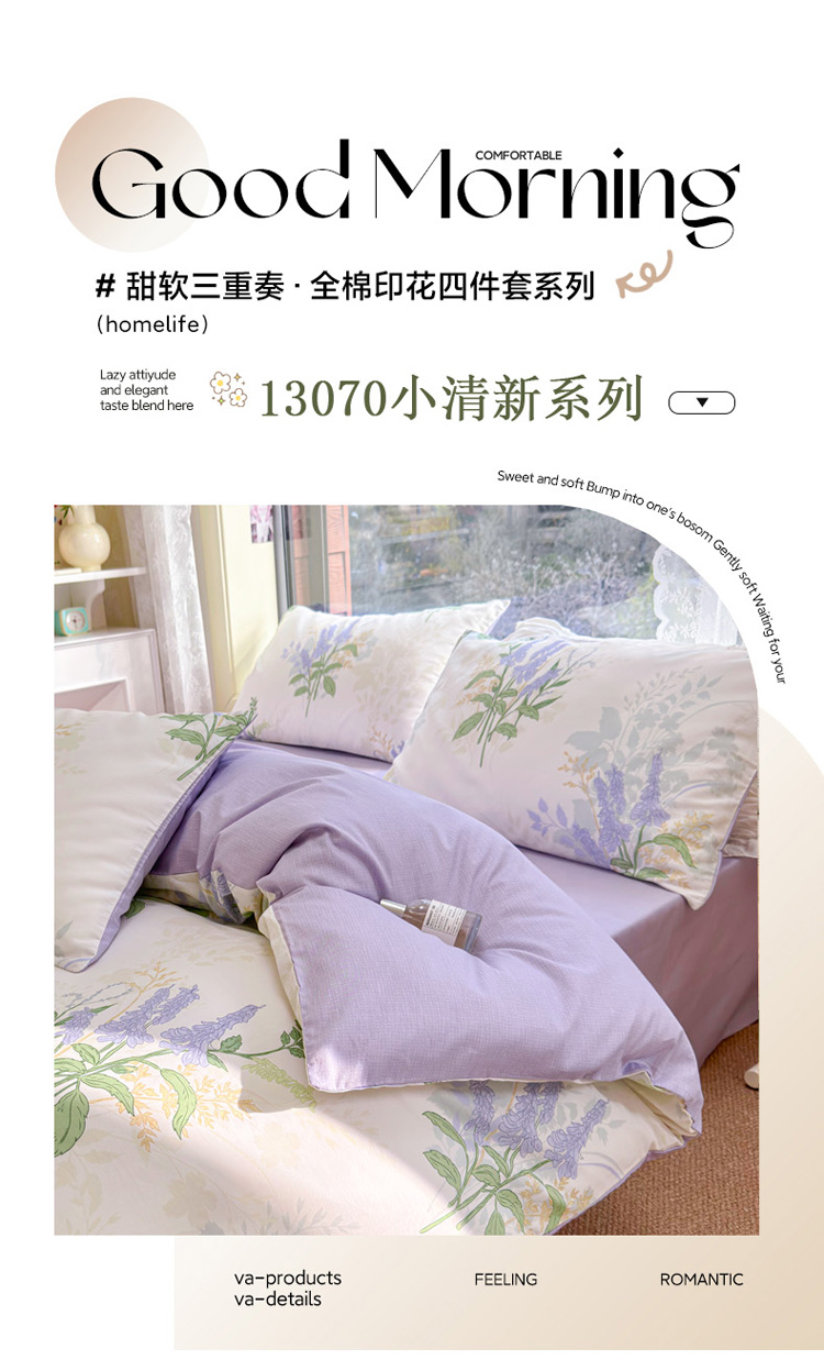 商品名称:洺兰家居 2025新款13372全棉单被套 紫薰