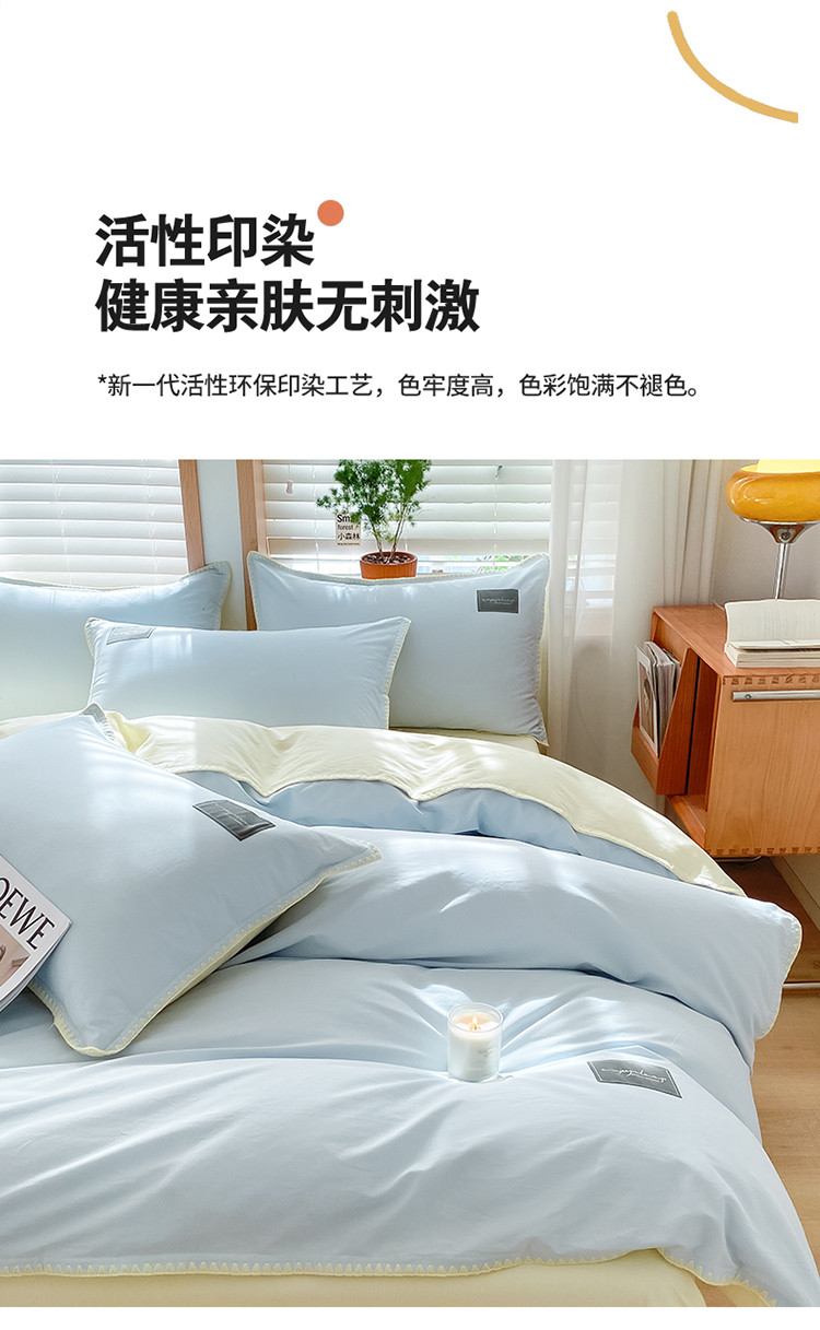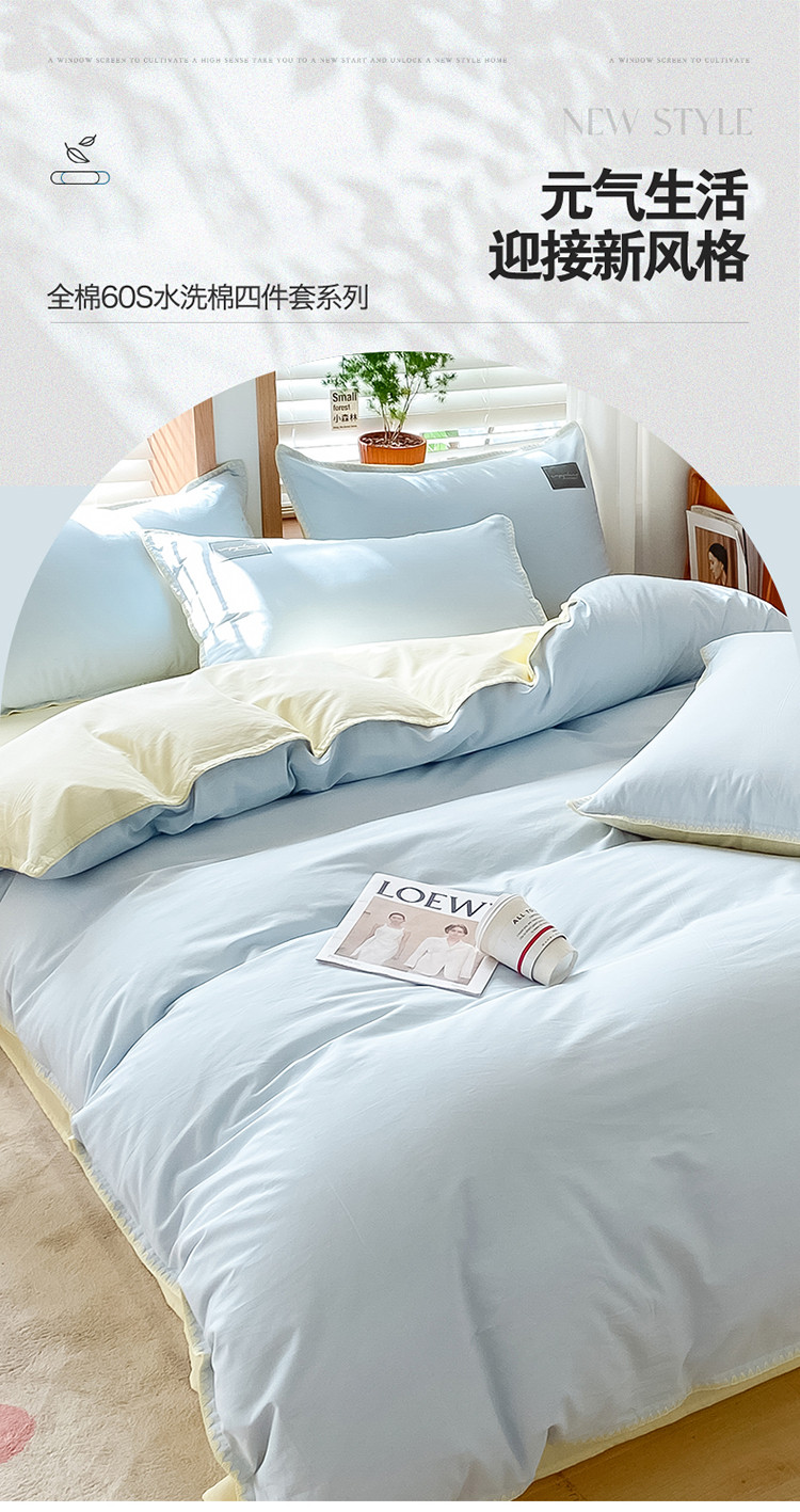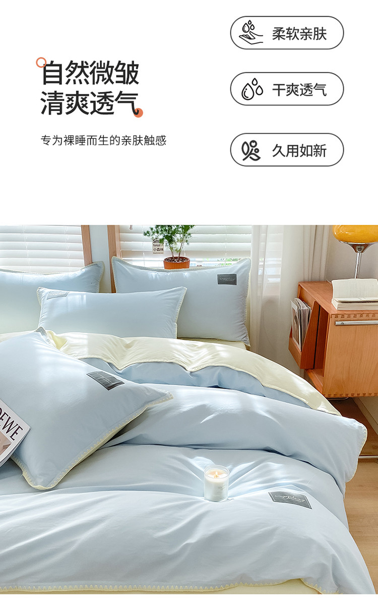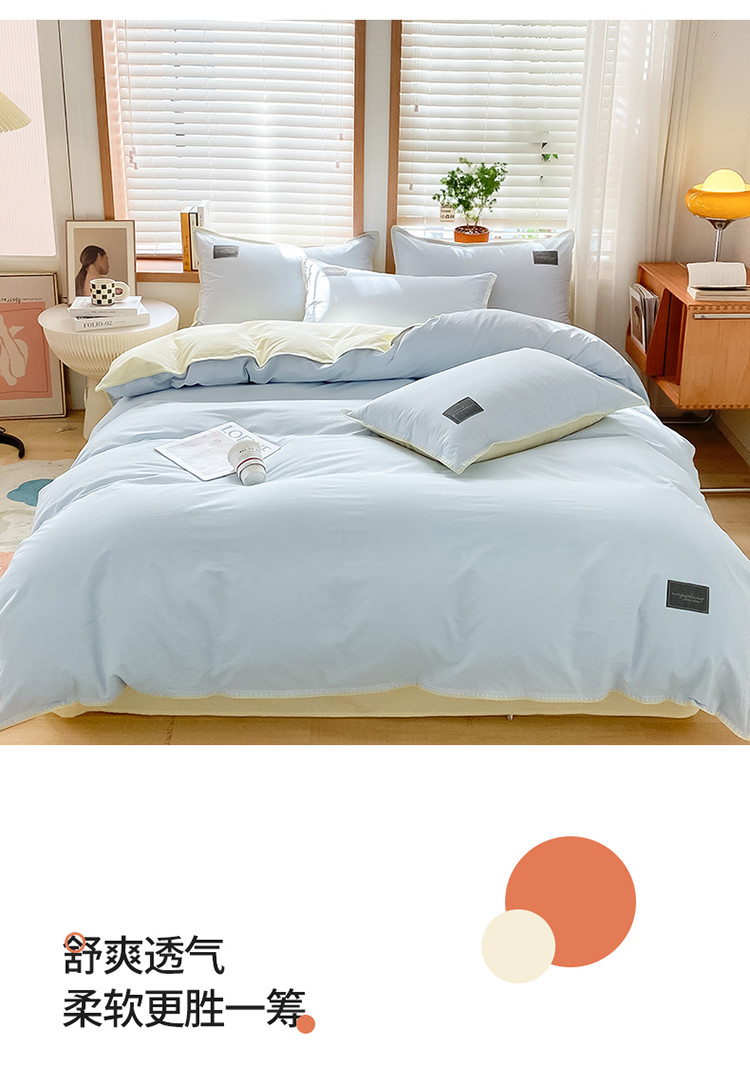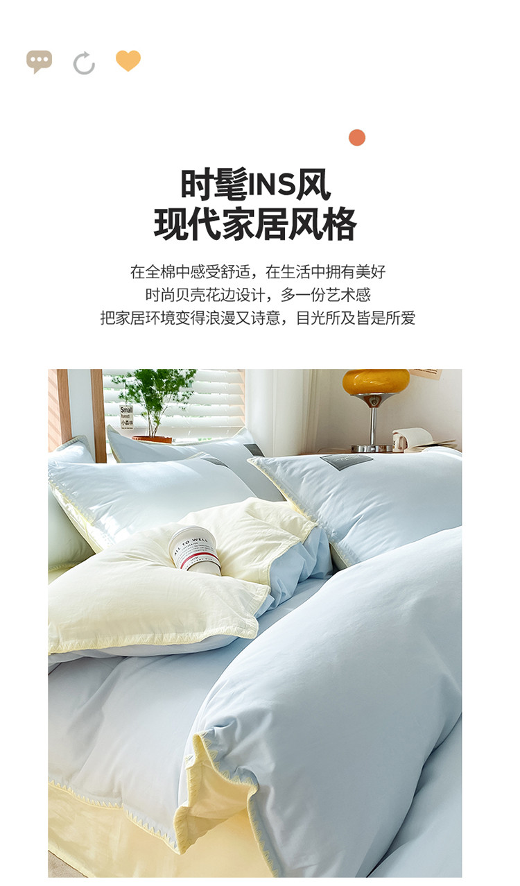 当前位置: 91家纺网 > 商品网购 > 床品套件 > 四件套 > 全棉普通四件套 > 2024无印A类全棉水洗棉贝壳针四件套 安娜贝欧-天蓝+奶油黄