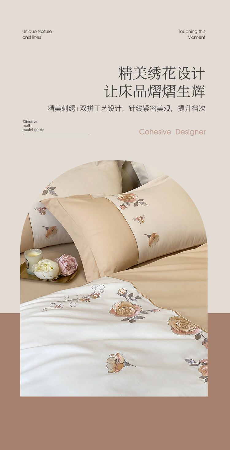 (总)理想家家纺 2025新款纯棉轻奢刺绣四件套-小秘密系列场景二,小秘密 粉,小秘密 黄,小秘密 蓝