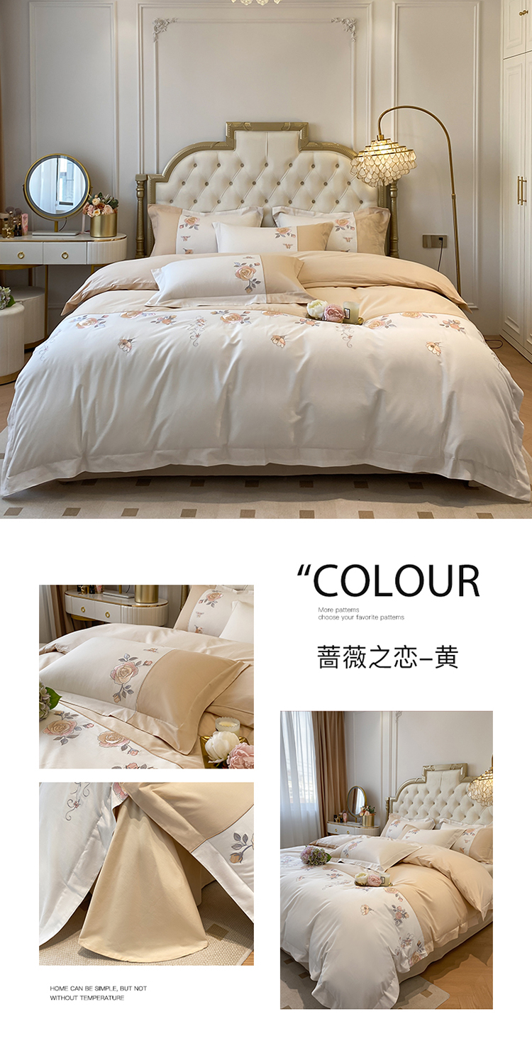 商品名称:2023新款13372全棉刺绣四件套-蔷薇之恋 黄