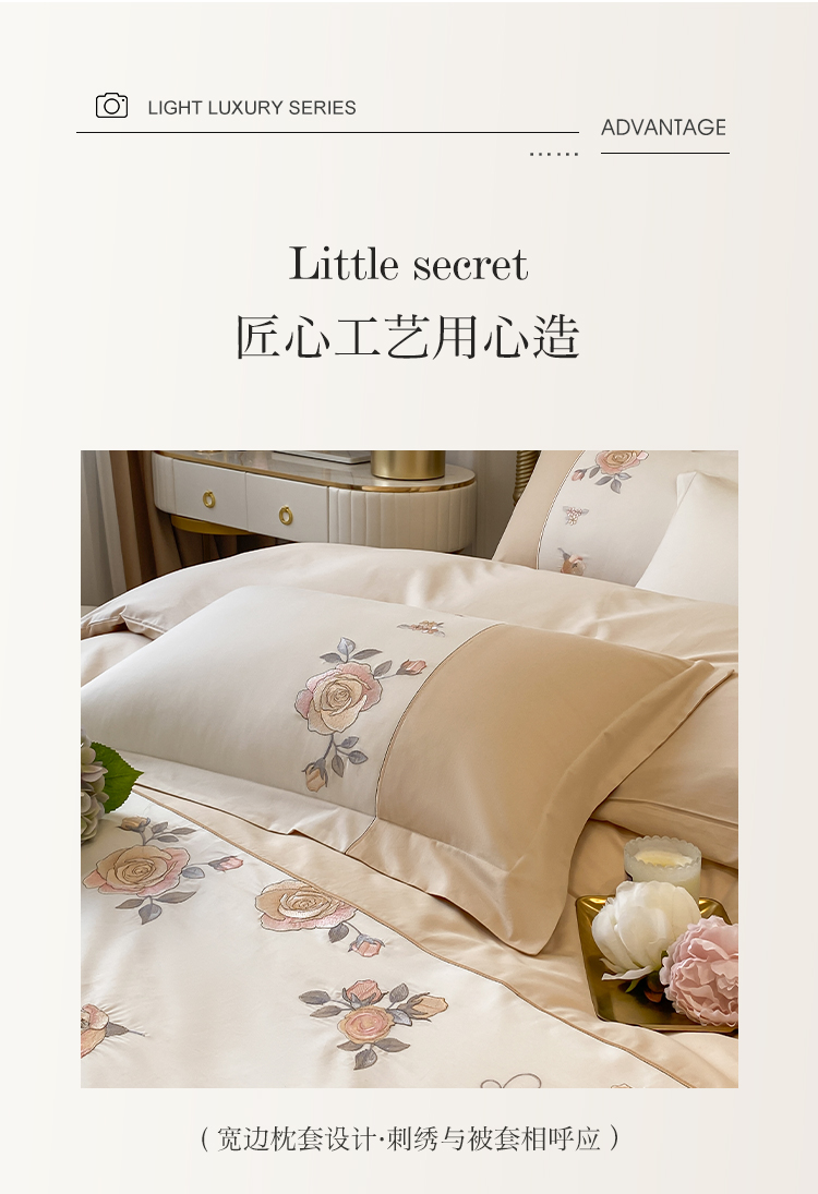 (总)理想家家纺 2025新款纯棉轻奢刺绣四件套-小秘密系列,小秘密-白,小秘密-粉,小秘密-蓝