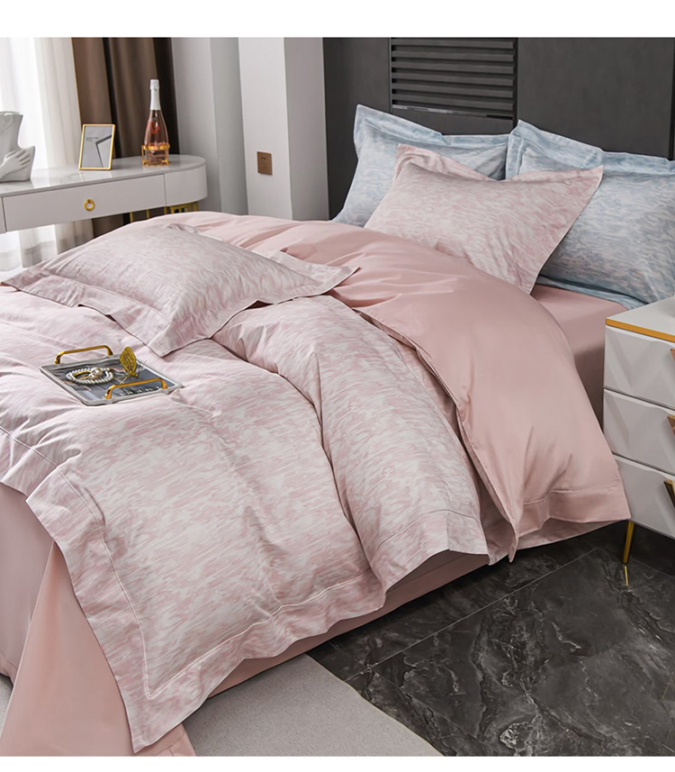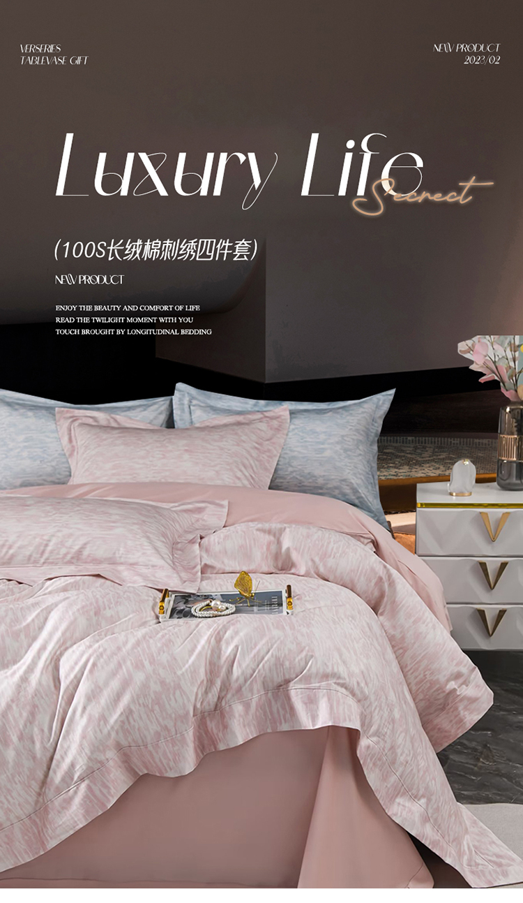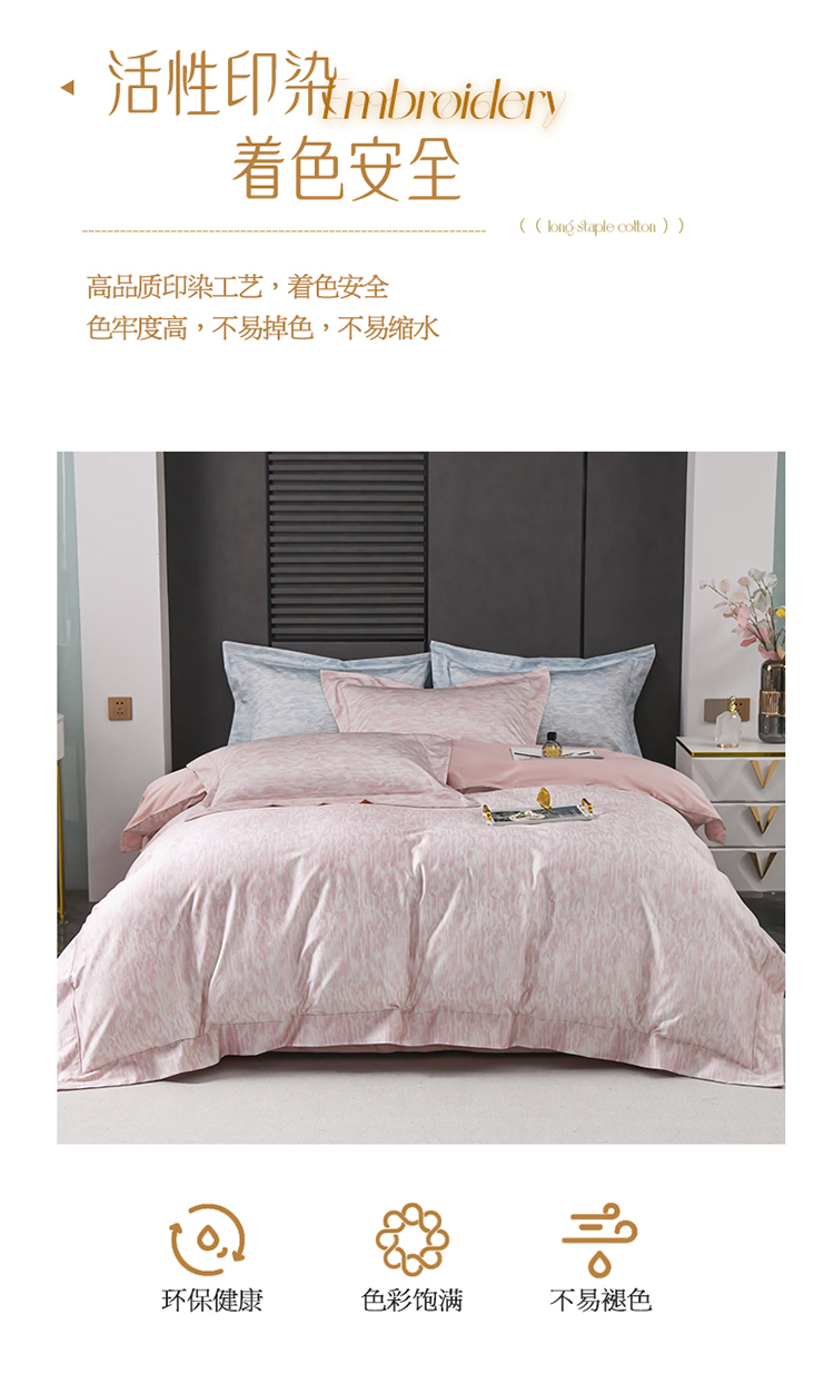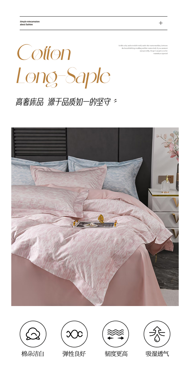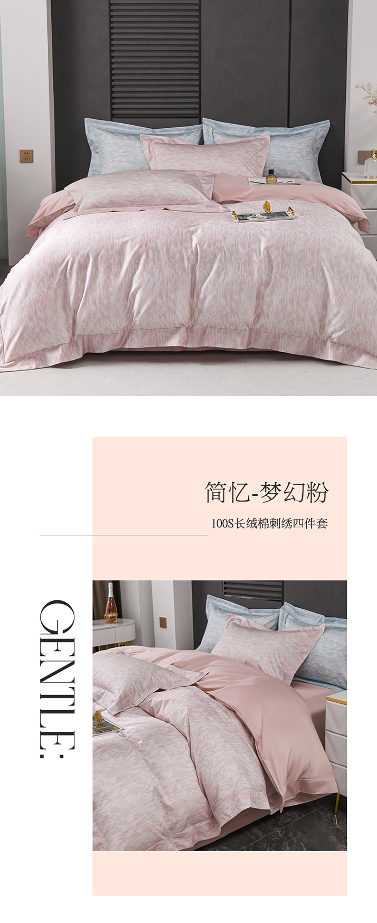 名品优仓 2023新款高支高密长绒棉刺绣款四件套-简忆 简忆-梦幻粉