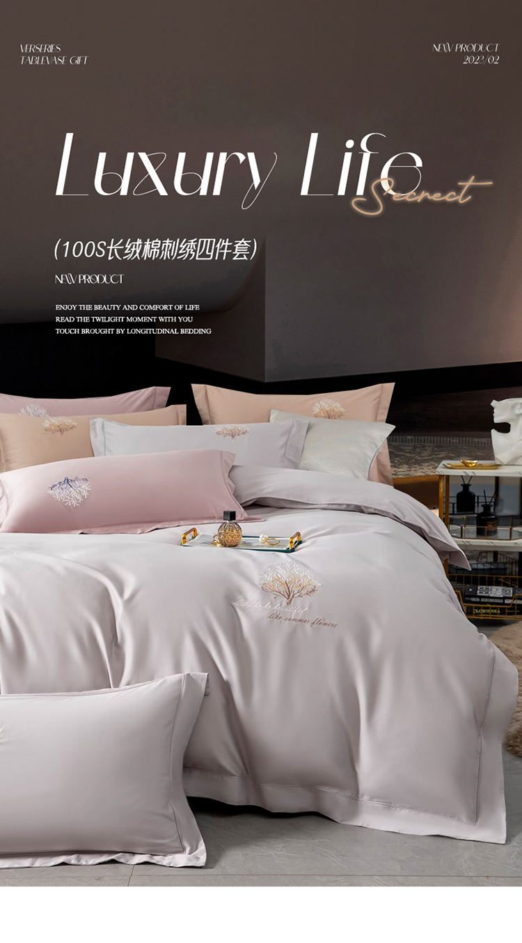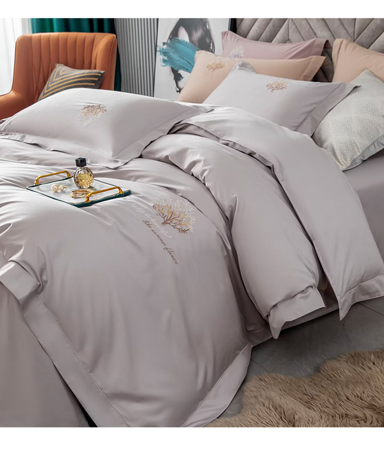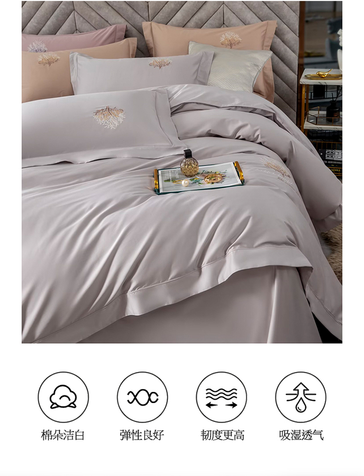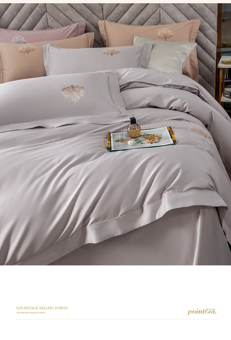 名品优仓 2023新款高支高密长绒棉刺绣款四件套-一树花开 一树花开-浅紫
