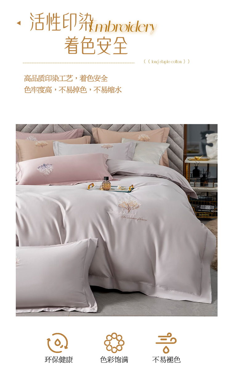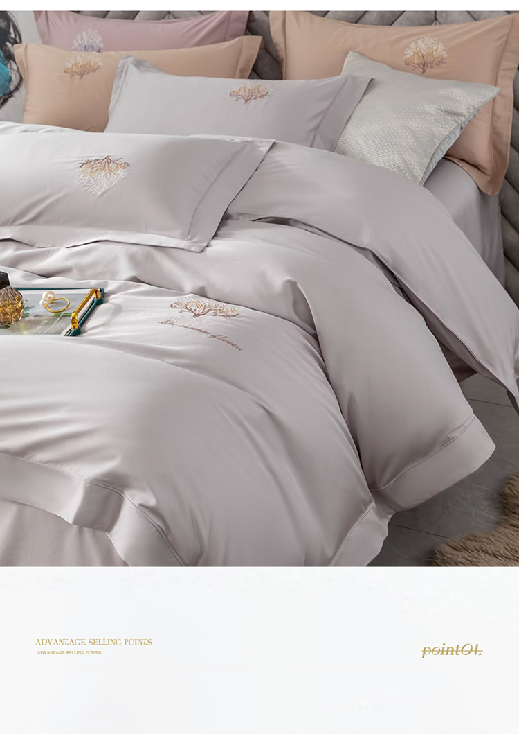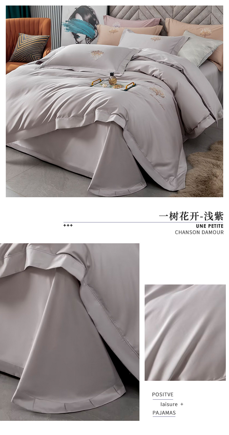 商品名称:名品优仓 2023新款高支高密长绒棉刺绣款四件套-一树花开 一树花开-浅紫