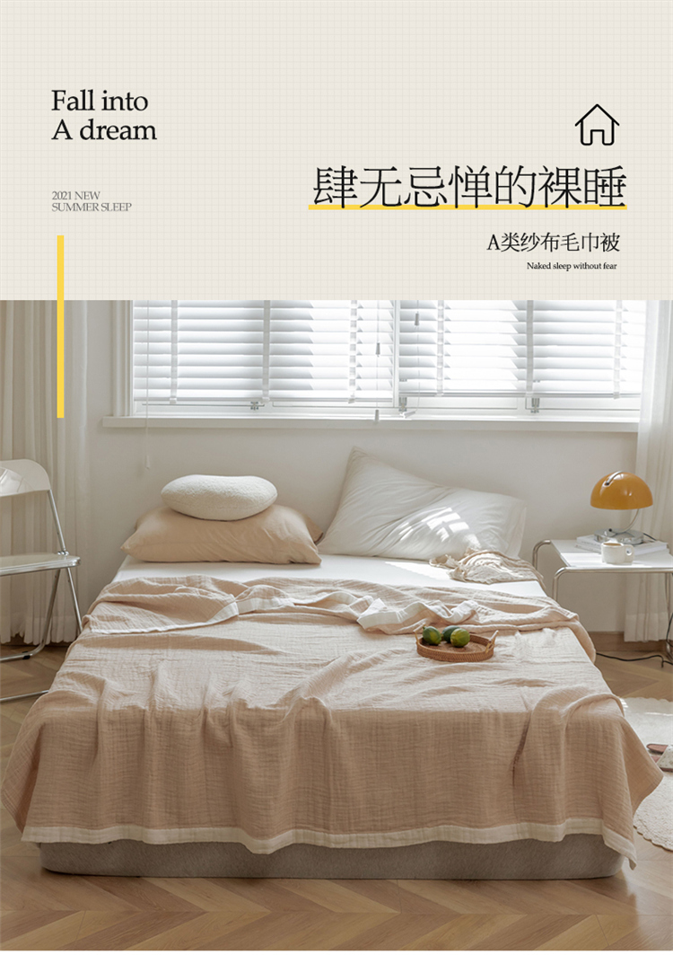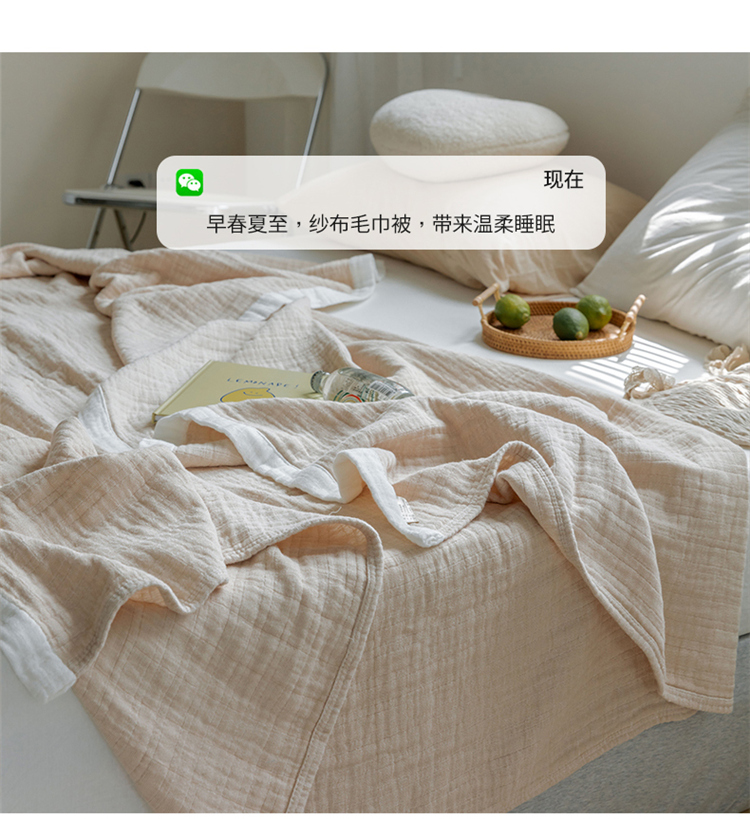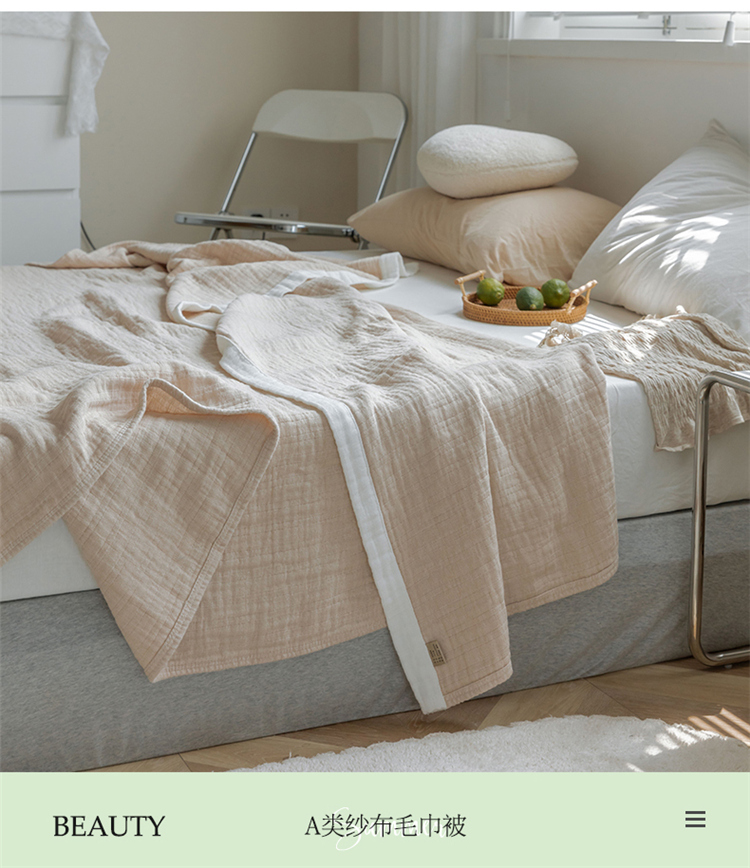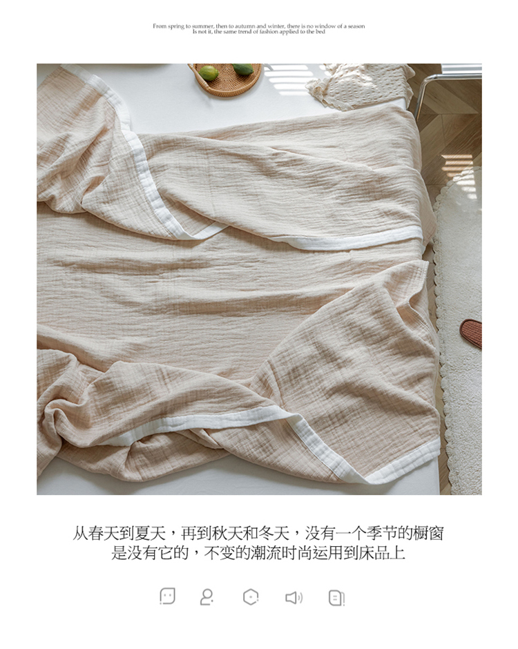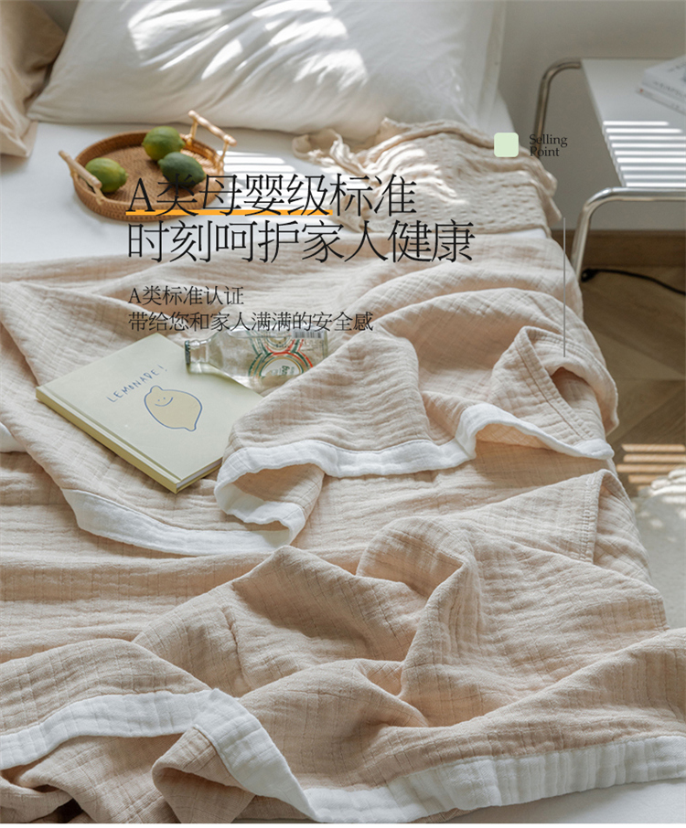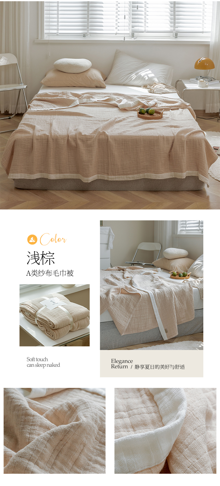 雯雨家纺2023新款A类全棉纱布毛巾被 浅棕