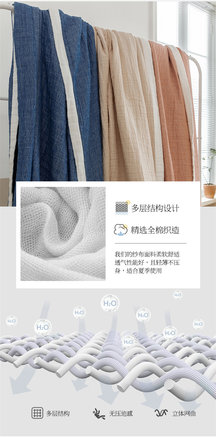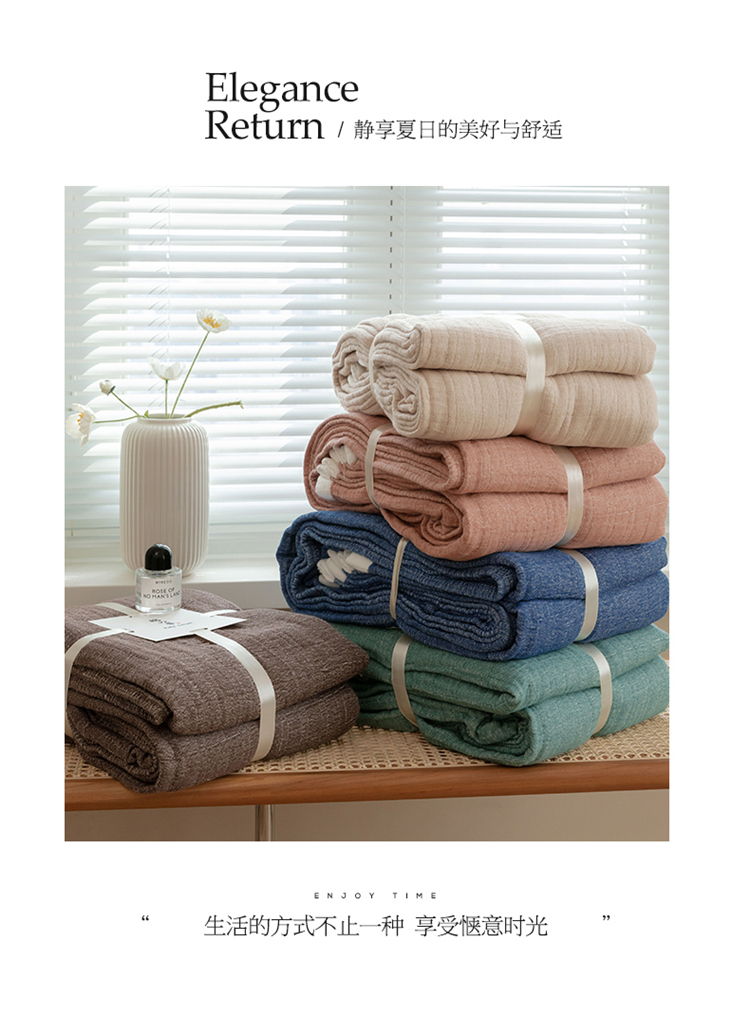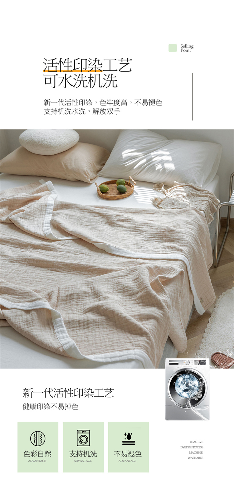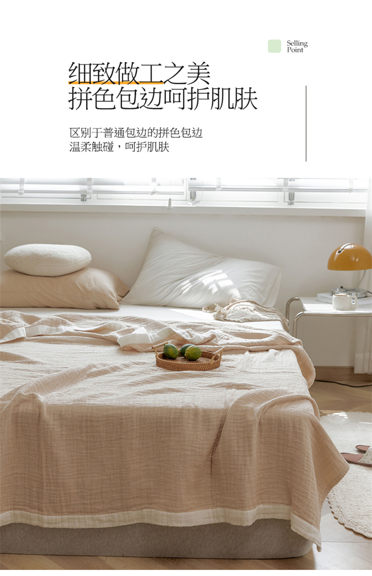 雯雨家纺2023新款A类全棉纱布毛巾被 浅棕