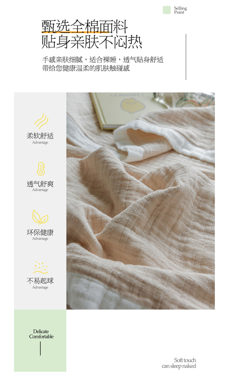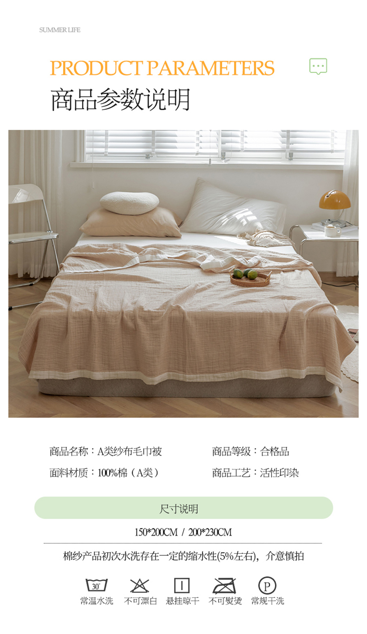 商品名称:雯雨家纺2023新款A类全棉纱布毛巾被 浅棕