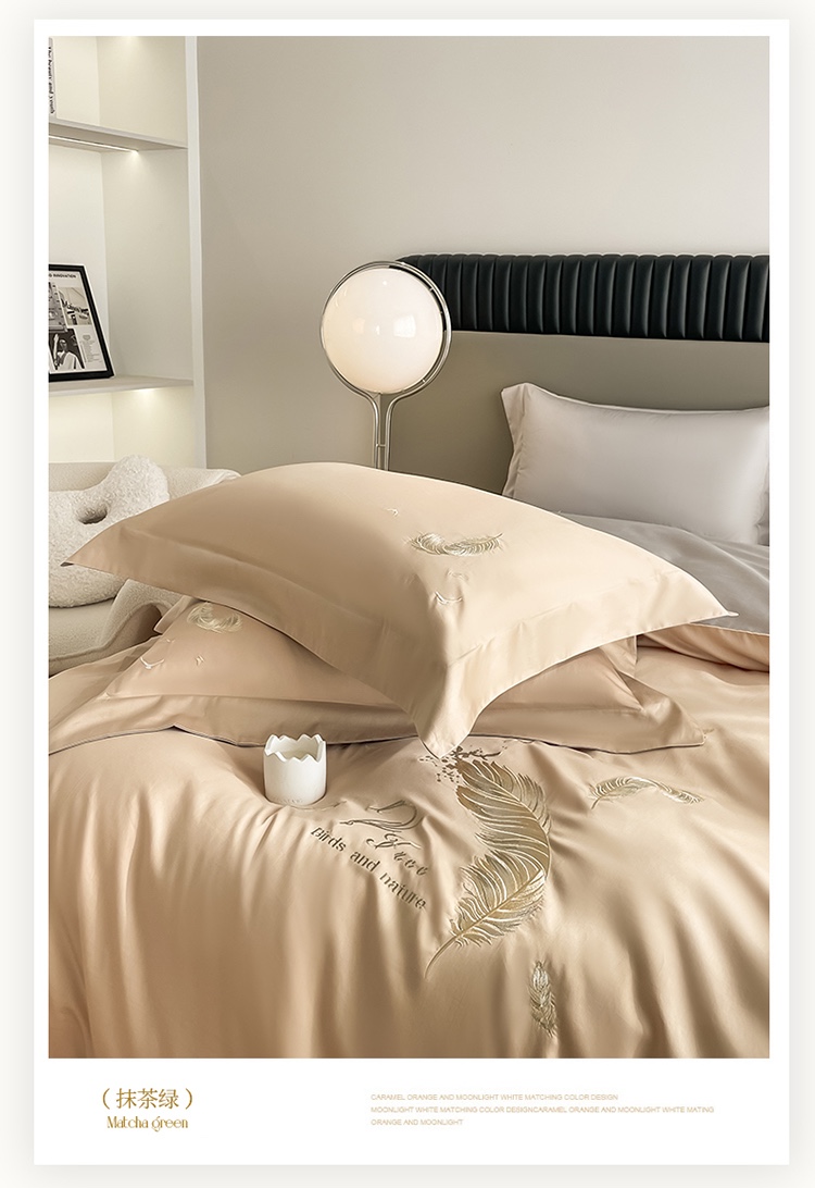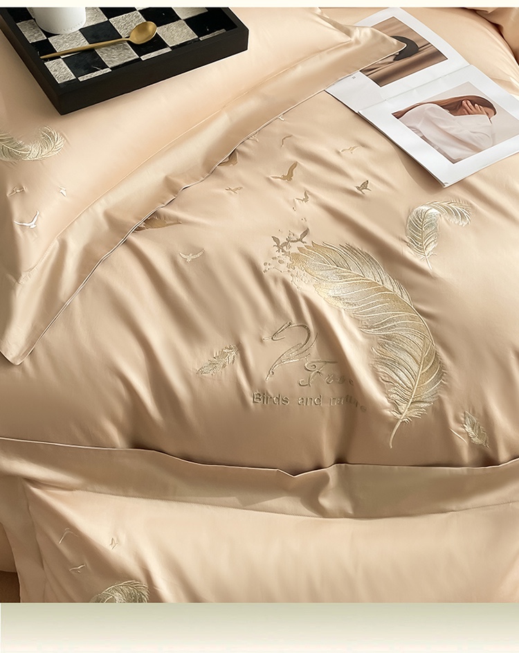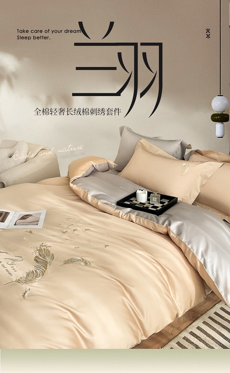 蓝米卡夫 2024全棉高级感长绒棉刺绣兰羽系列-单被套 兰羽-香槟山灰